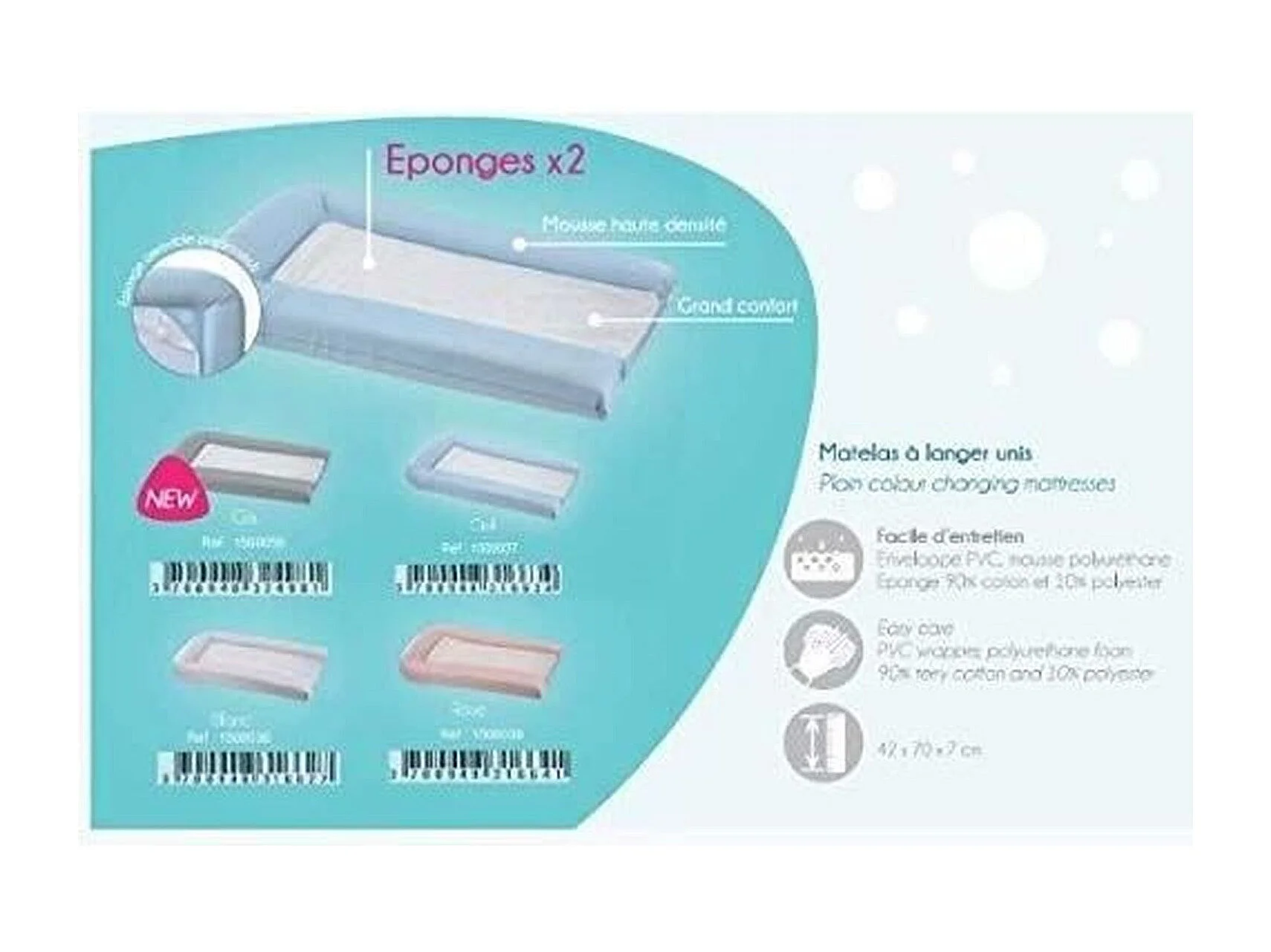 Matelas à langer avec éponges amovibles - Blanc - 42 x 70 cm