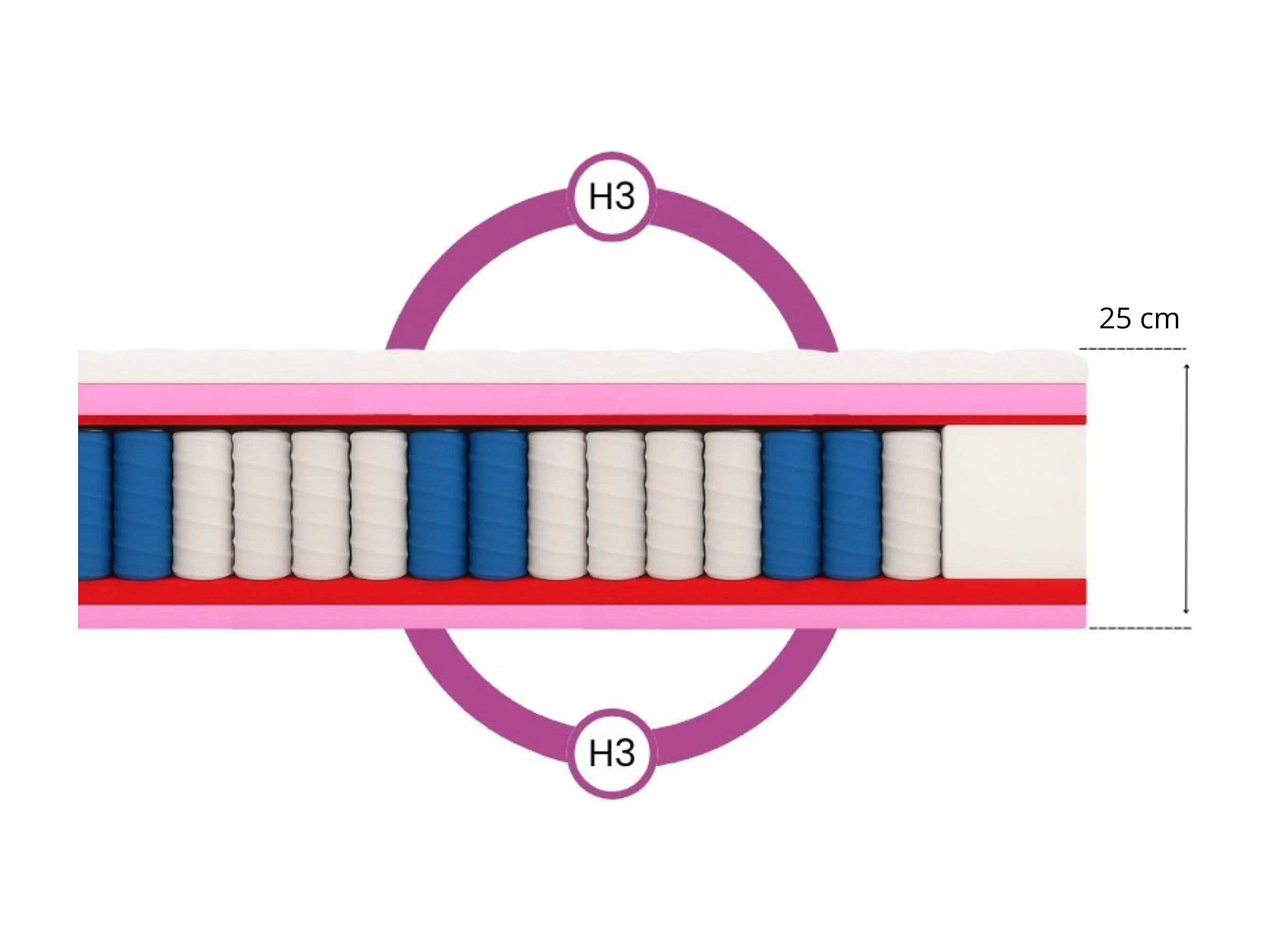 Matelas à ressorts ensachés Muvieso, 7 zones, 160 x 200 cm, hauteur 25 cm, H3, aloe vera