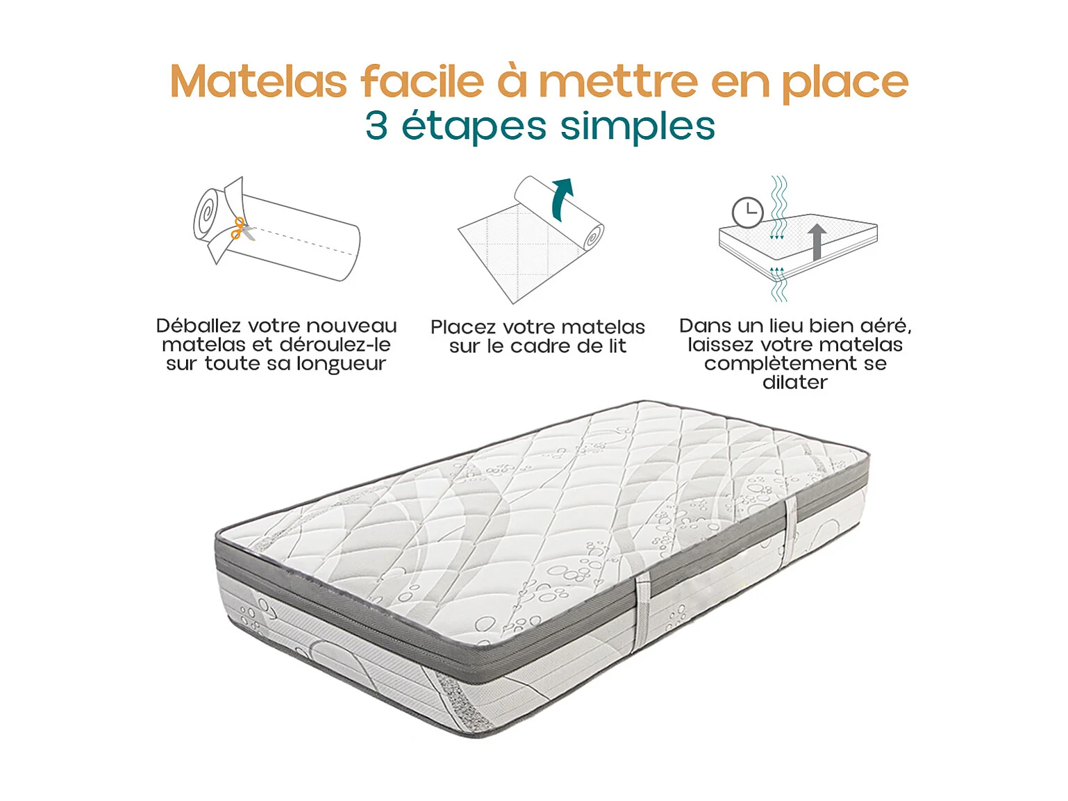 Matelas BILA, réversible 160x200 cm , avec face été/hiver en mousse mémoire de forme, ferme, indépendance du couchage, épaisseur 26cm