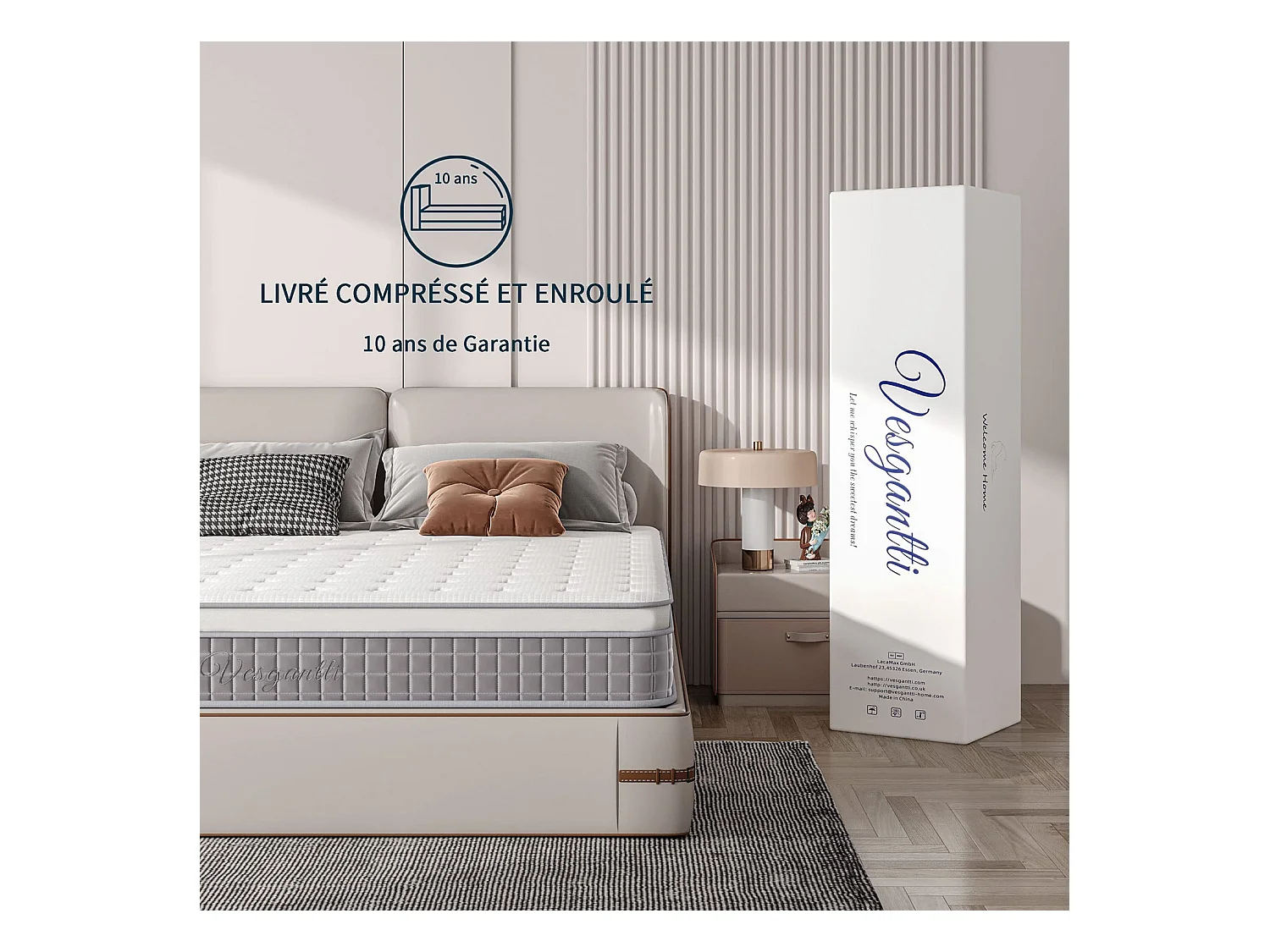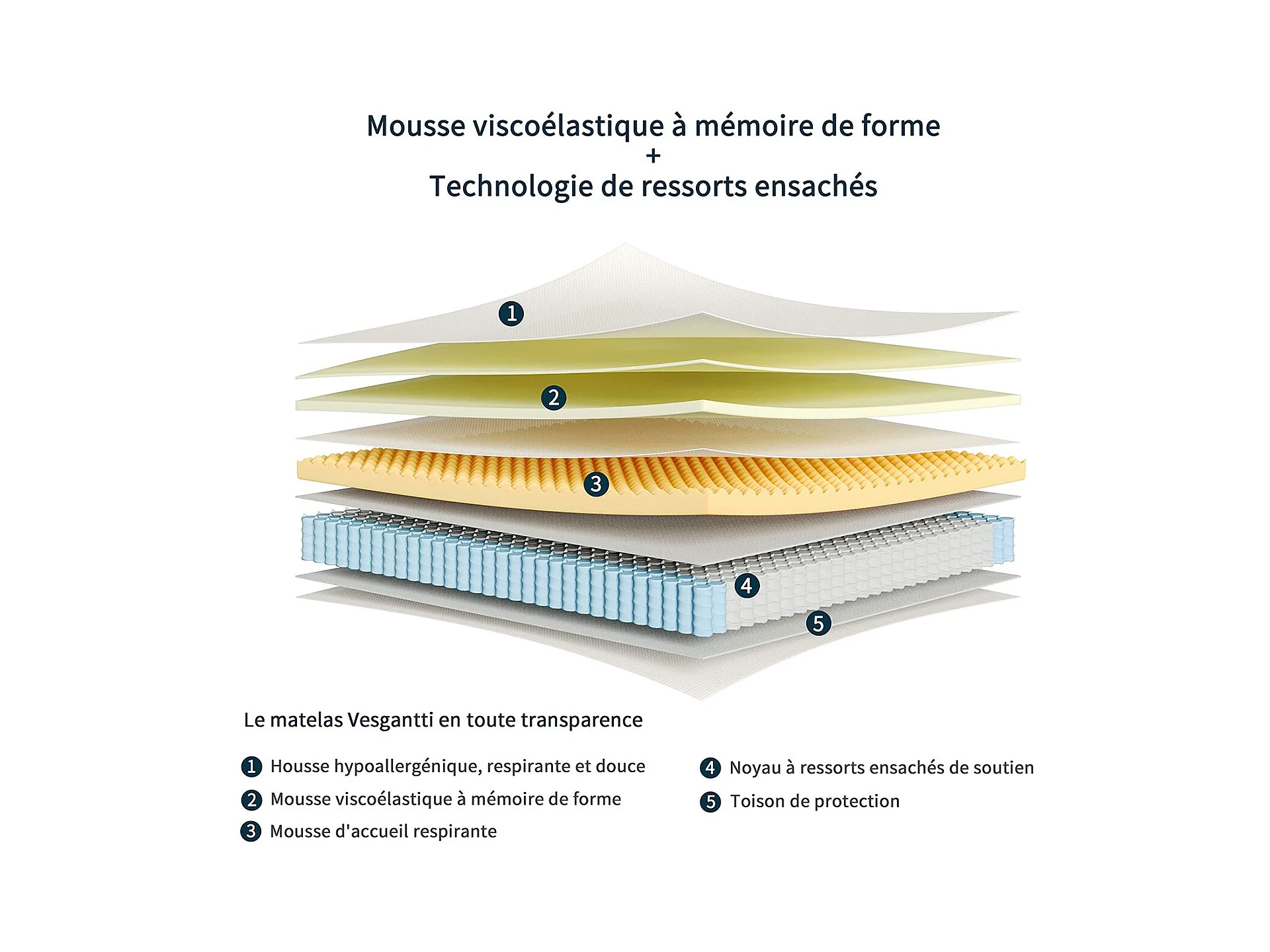 Matelas Boxtop 160x200cm, Épaisseur 25cm, Nova Fashion Hybrid, Ressorts Ensachés & Mousse Mémoire, Confort 7 Zones, Certifié CertiPUR-US
