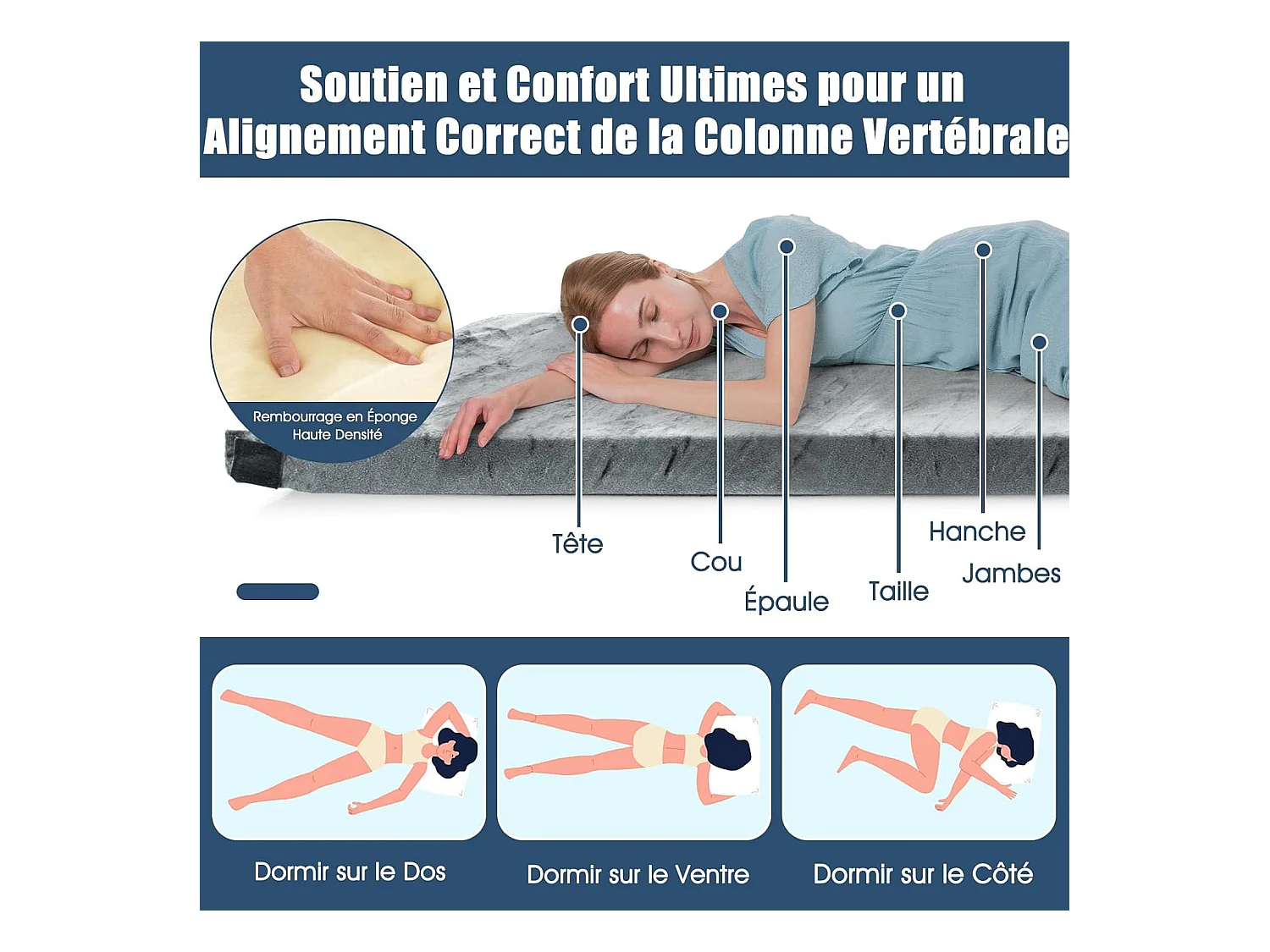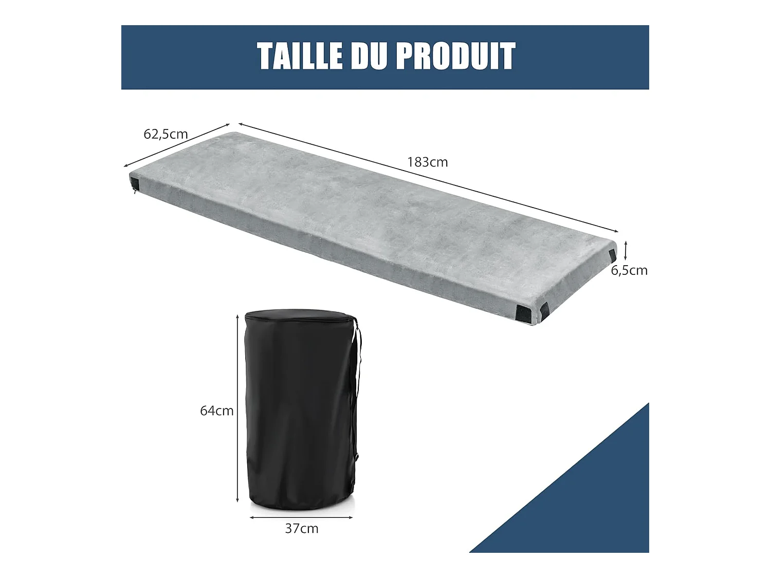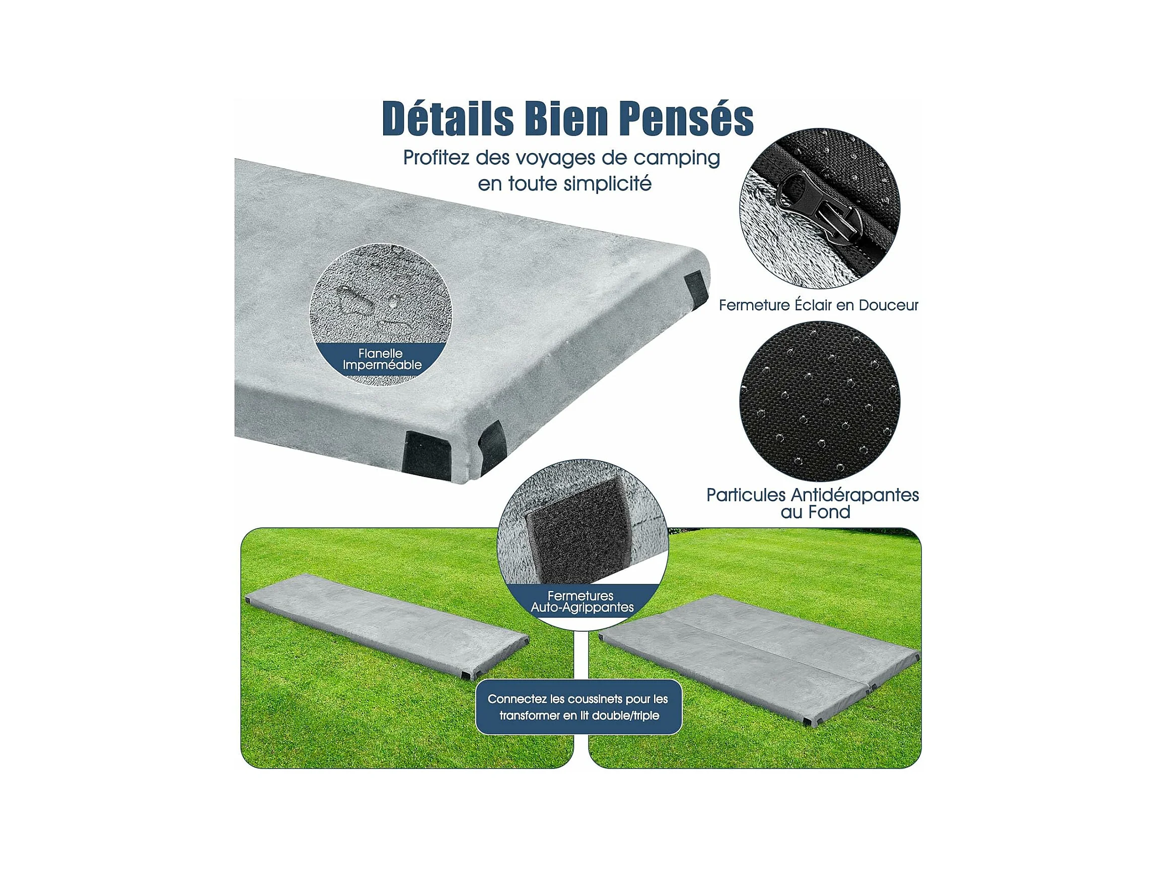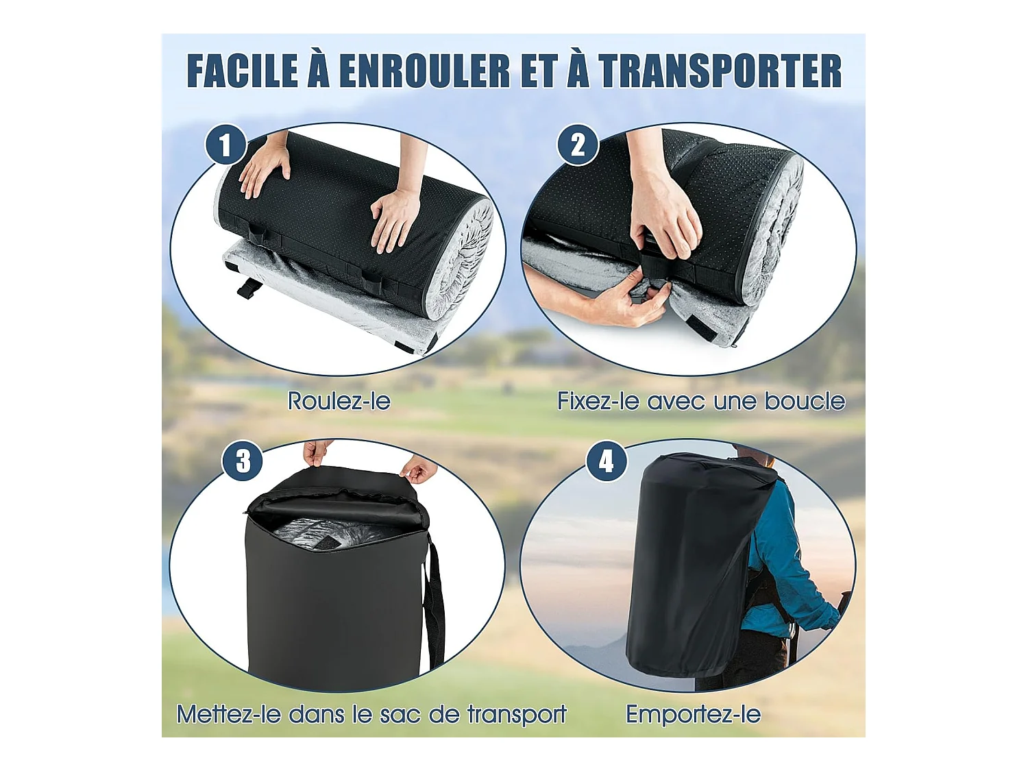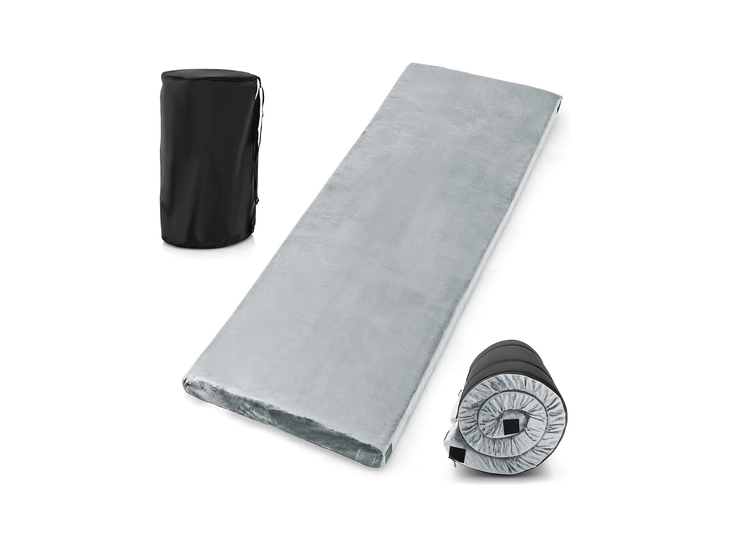 Matelas de Camping en Mousse à Mémoire de Forme, Matelas de Couchage Roulable Léger, Tissu Détachable et Imperméable, 183 x 62,5 x 6,5 cm (Gris)
