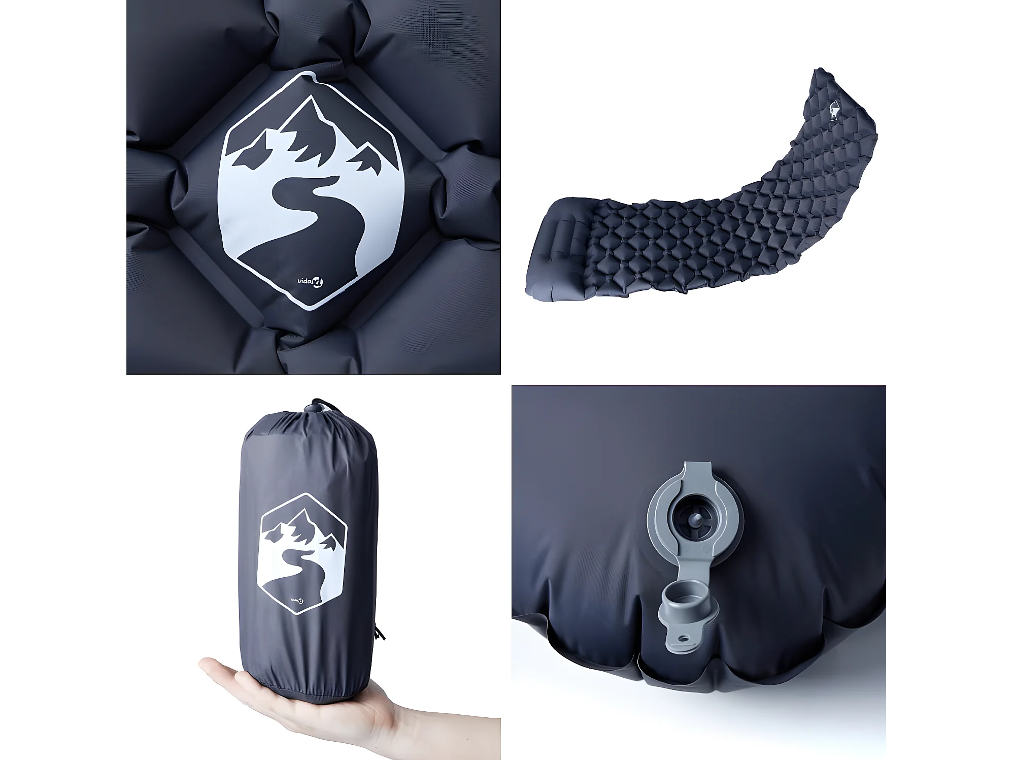Matelas de camping gonflable avec oreiller 1 personne gris FR333018