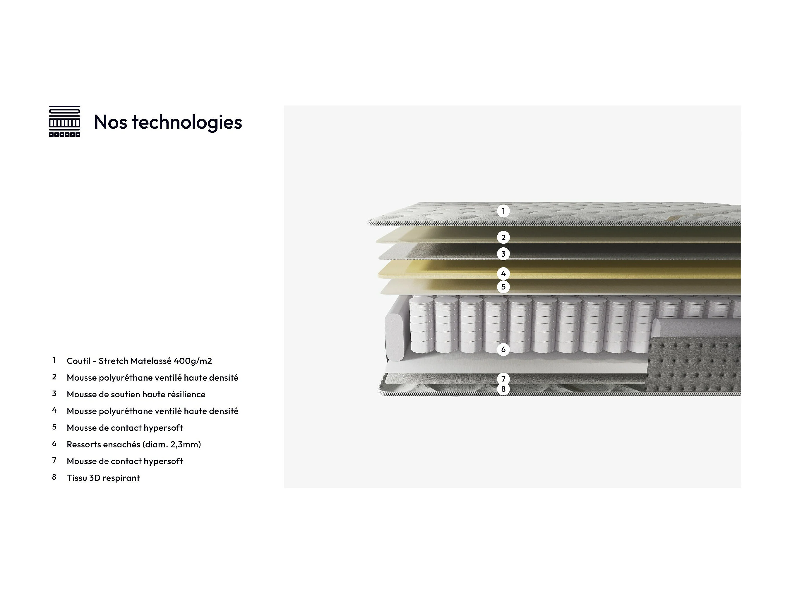 Matelas 140x190cm - Ressorts ensachés + Mousse HR - Épaisseur 25cm