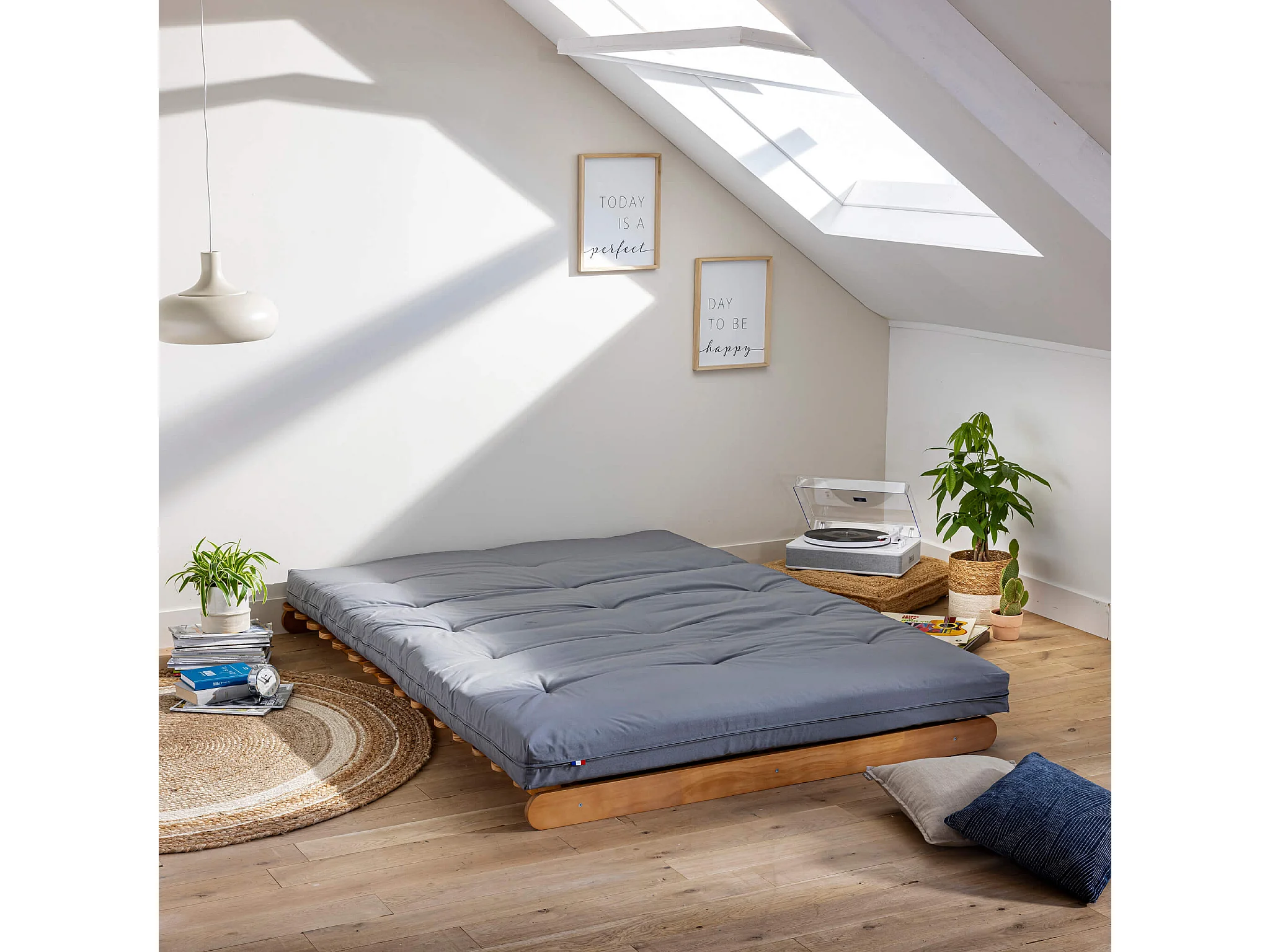 Matelas futon coeur en mousse à mémoire de forme, gris clair 90x200