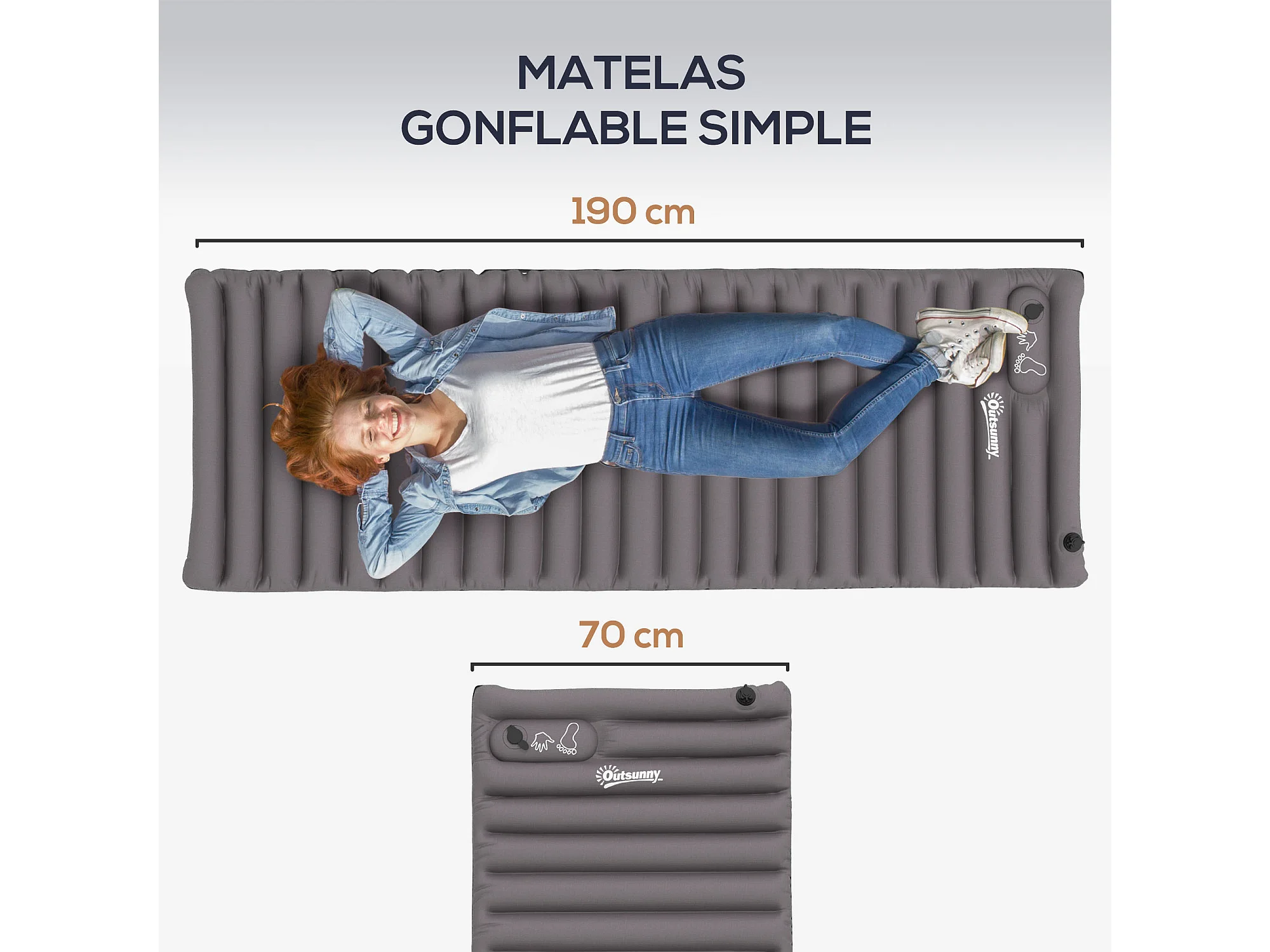 Matelas de camping gonflable 1 personne gris 190x58x6 cm FR161096