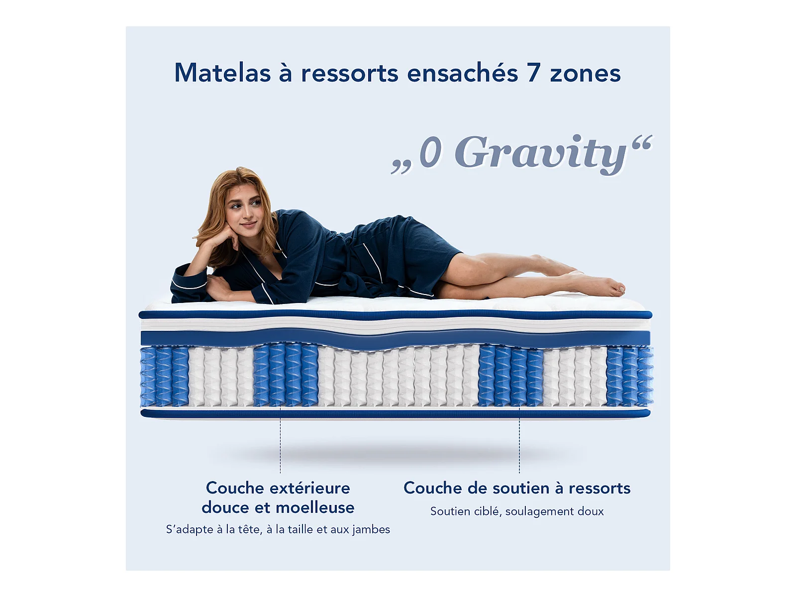 Matelas 90x190 cm ressorts - 26 cm d'épaisseur - 7 zones de confort