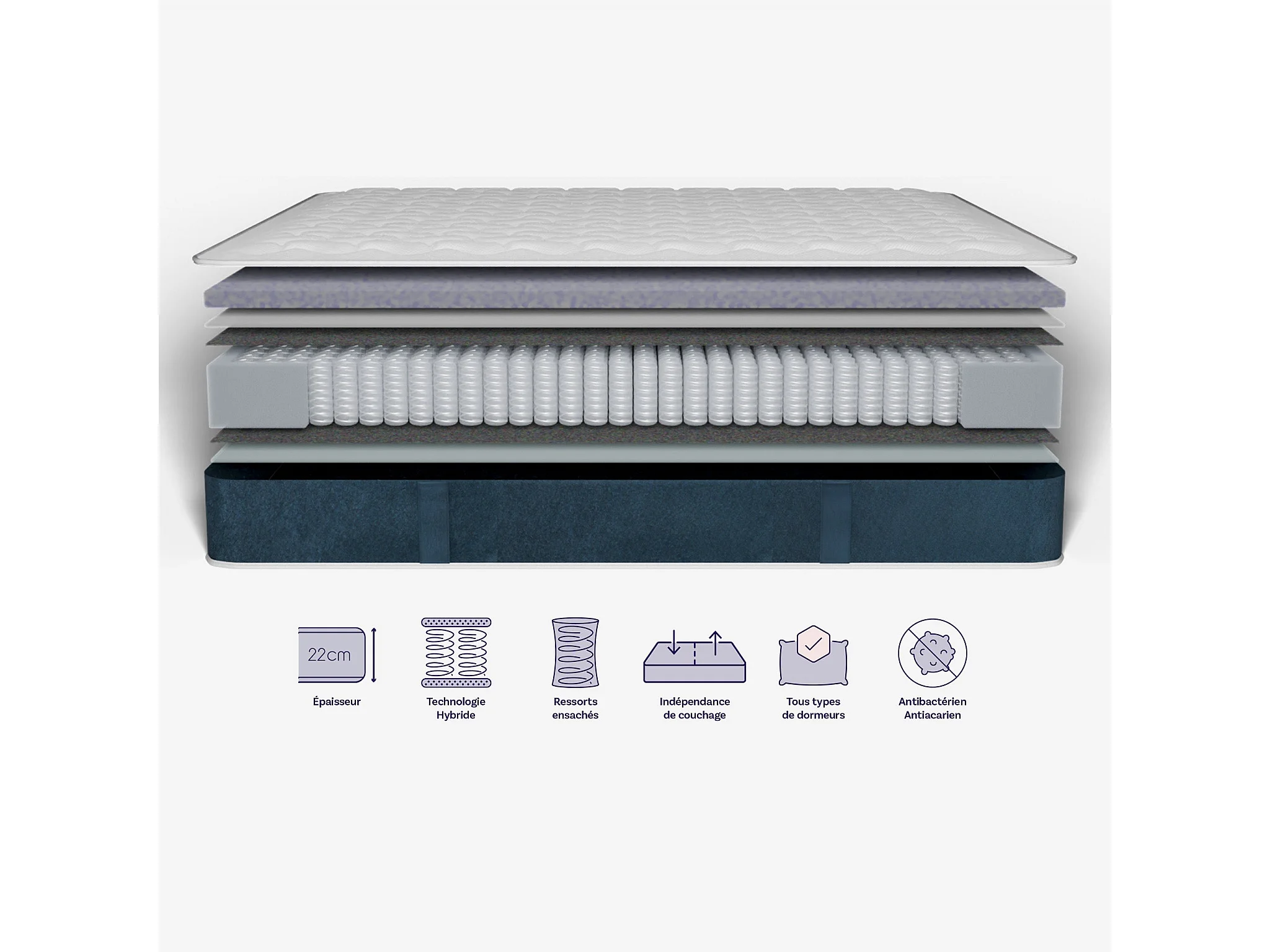 Matelas hybride mousse et ressorts 140x190 épais 22cm