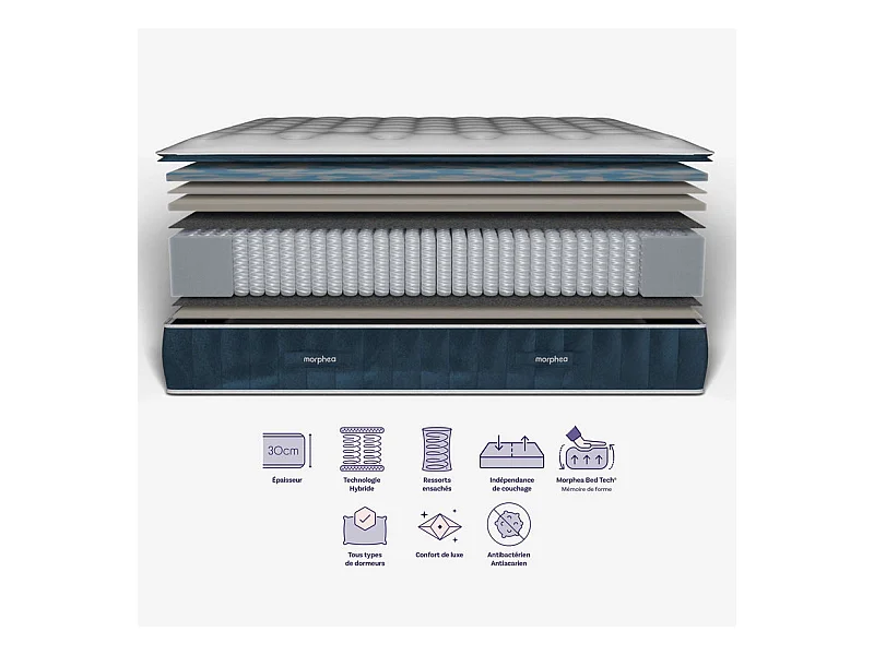 Matelas luxe hybride mémoire de forme 200x200 épais 30cm
