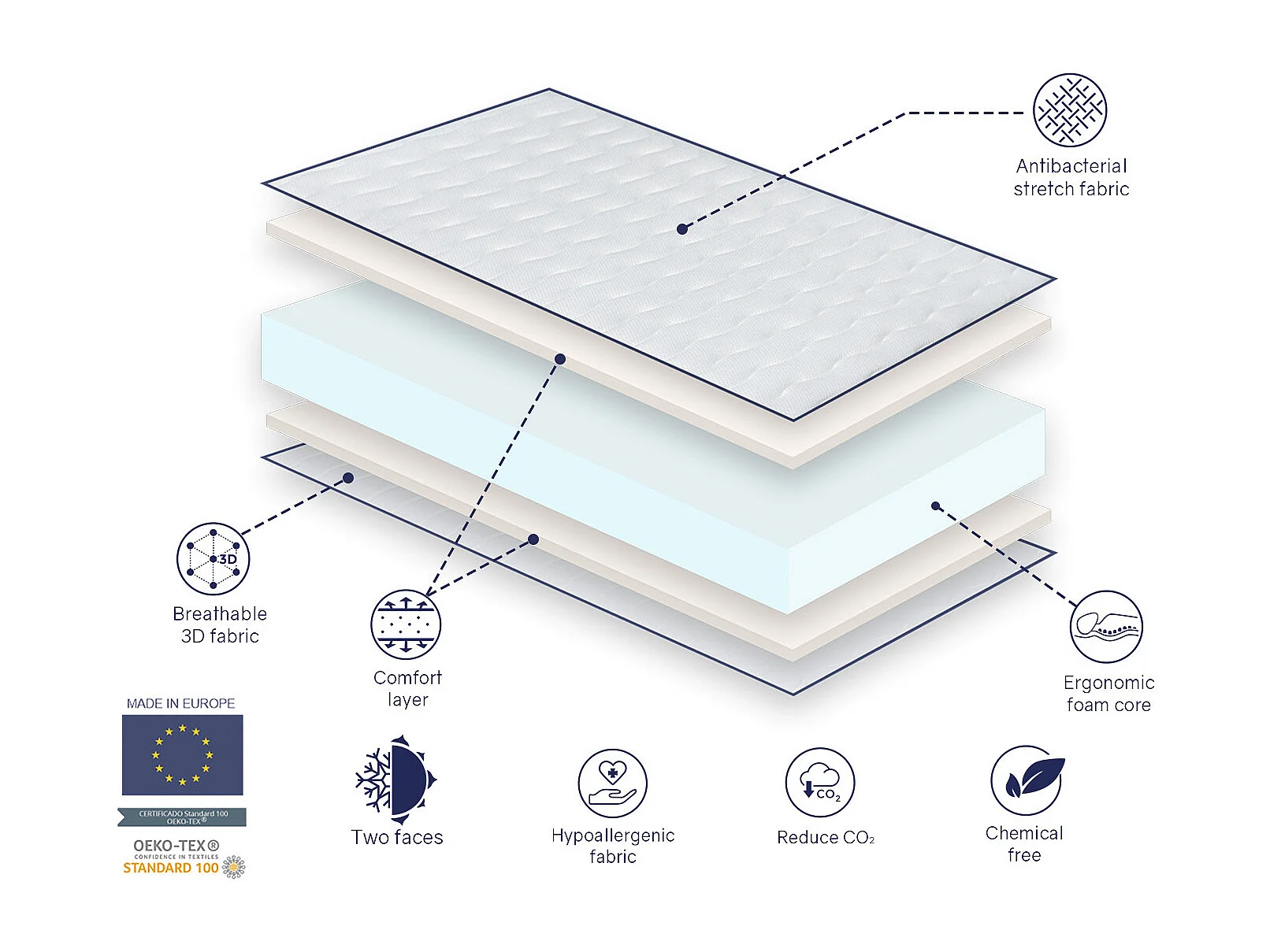 Matelas LOT 2 PROMO CONFORT 90X160 Épaisseur 14 CM, Memoire, Juvénil, idéal pour lits gigognes, lit cabane et Montessori
