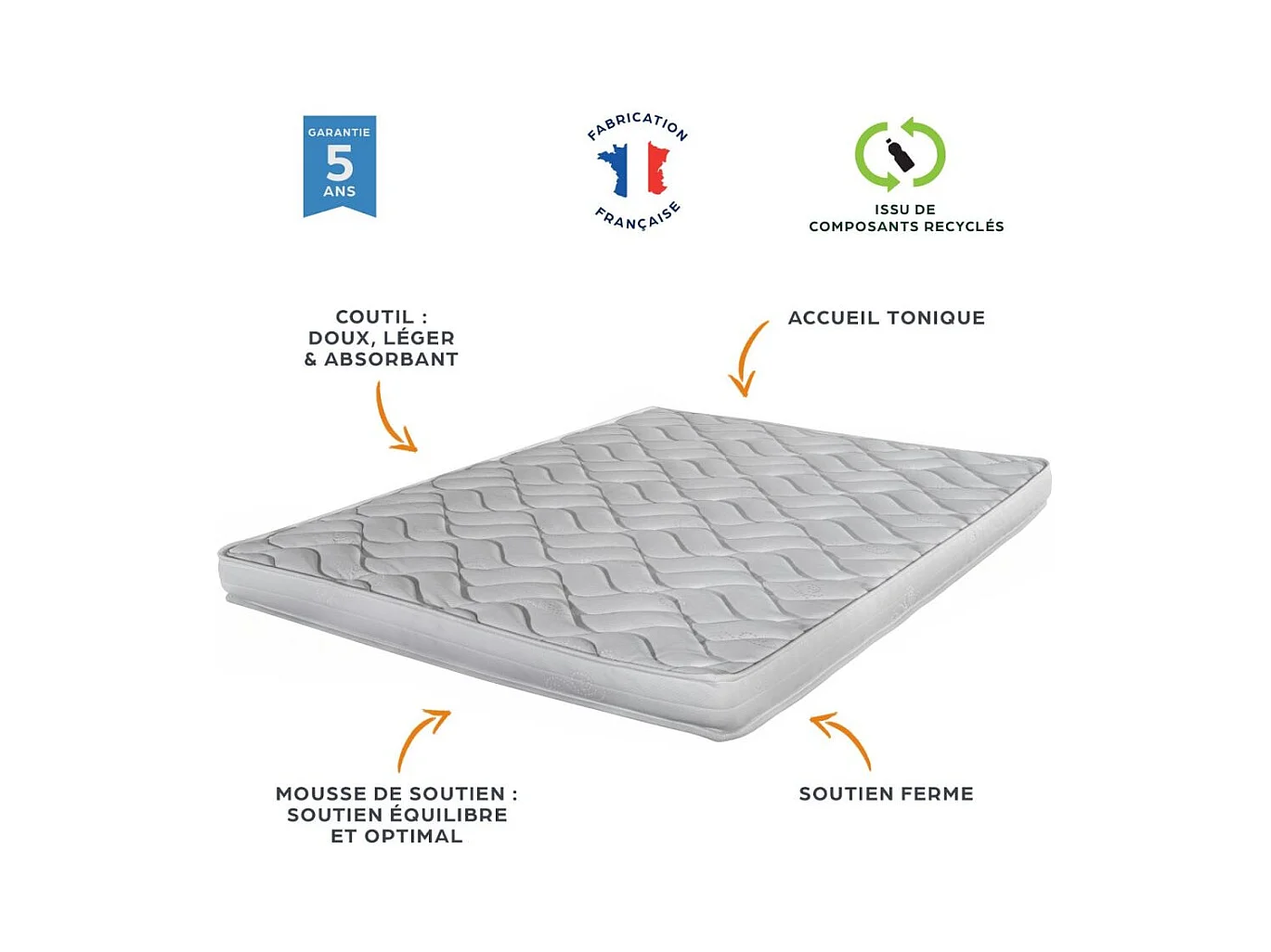 Matelas 80x190 Melissa - Mousse - Hauteur 13 cm - 3 zones - Soutien ferme