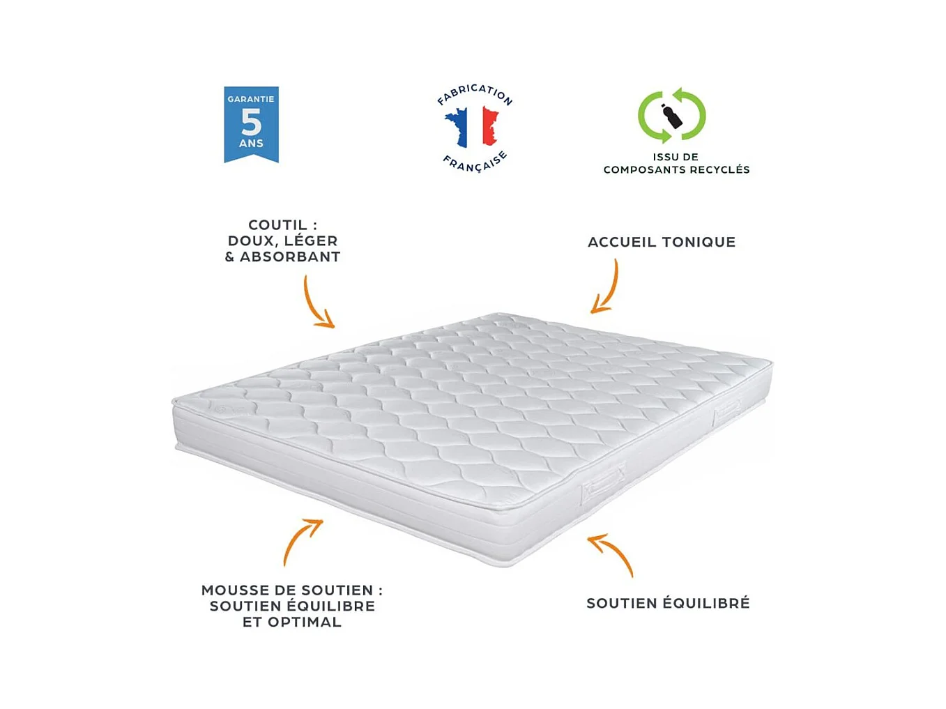 Matelas 140x190 Montana - Mousse - Hauteur 18 cm - 3 zones - Soutien medium
