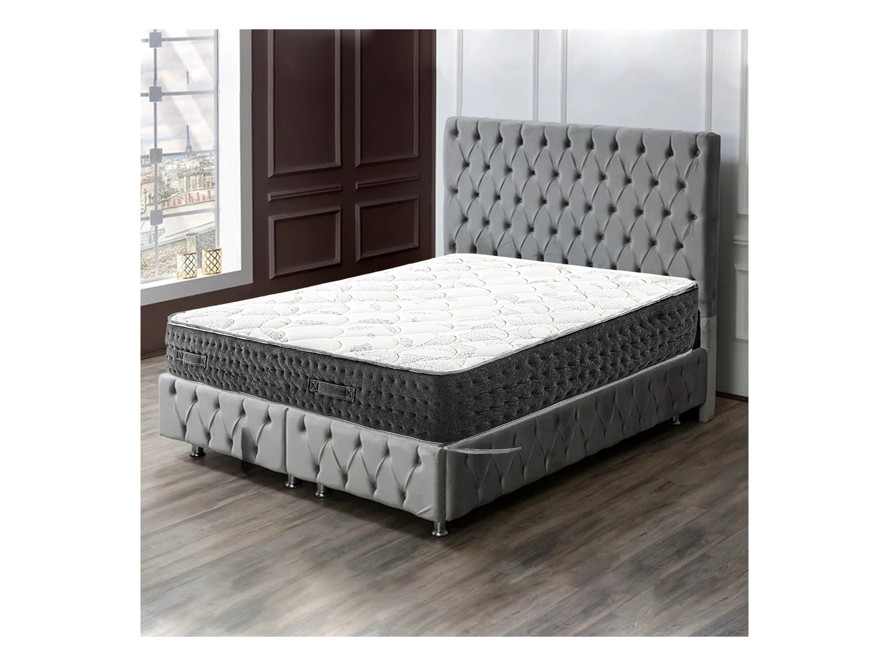 Matelas MORGA Queen Size 160x200 cm, à ressorts ensachés, en mousse haute densité, Soutien très ferme, face été/hiver, épaisseur 27 cm
