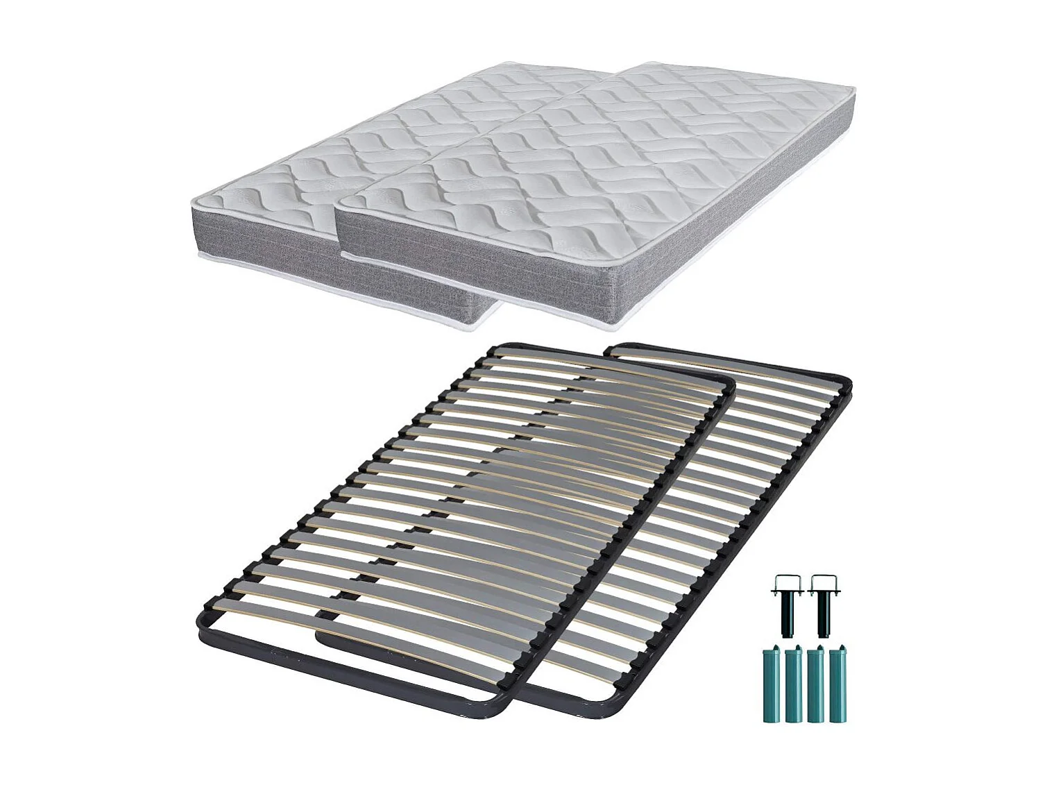 Matelas mousse + Sommier métal C220 2x90x190 Morgan - Hauteur 17 cm - Soutien ferme