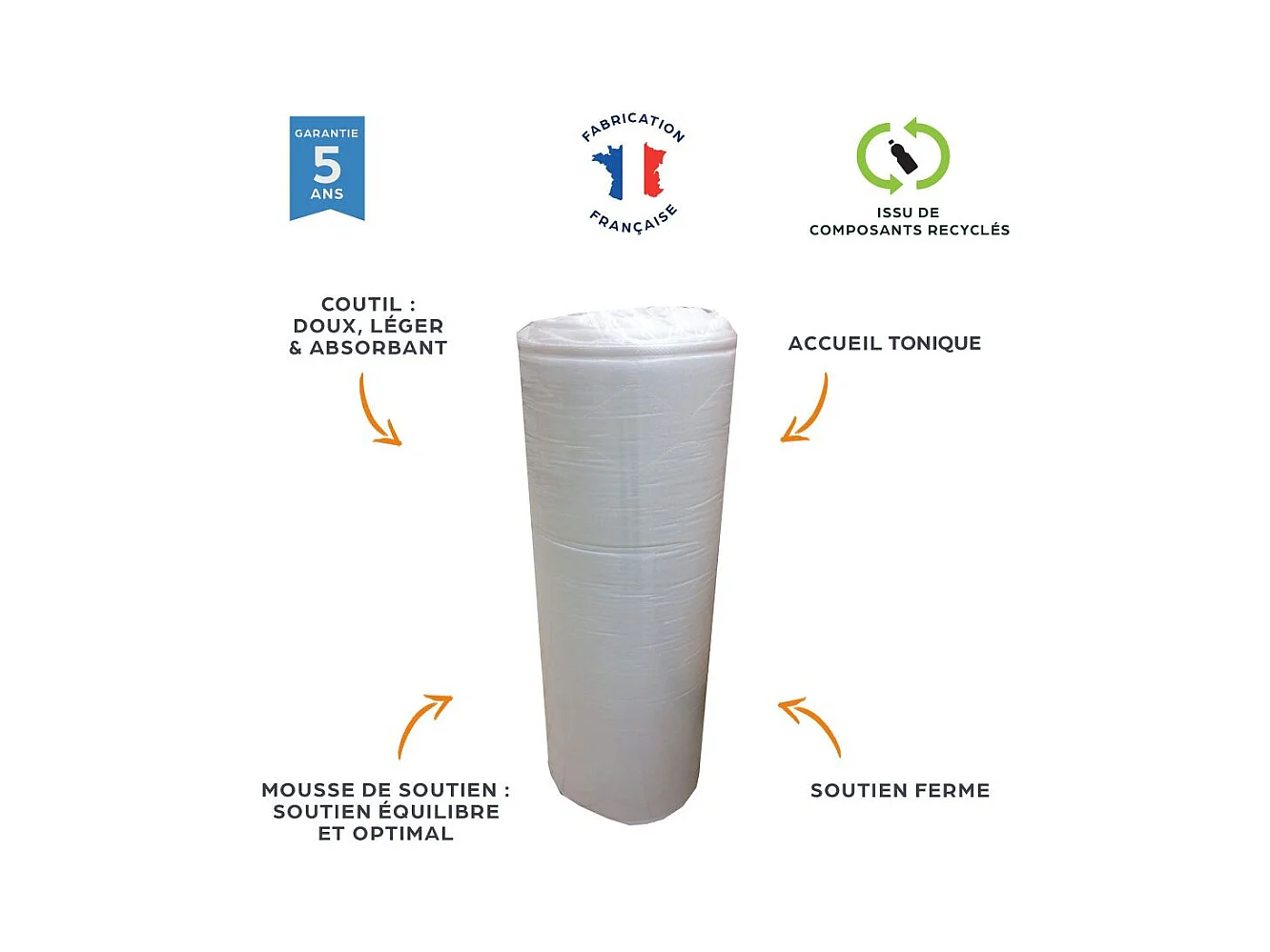 Matelas mousse + Sommier métal C310 90x190 Maryland - Hauteur 20 cm - Soutien ferme
