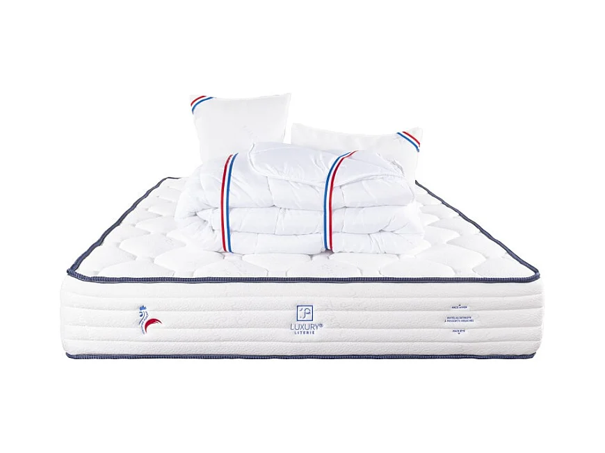 Matelas Patriote, 27cm, Ressorts Ensachés, mousse haute densité , Indépendance du Couchage, Soutien ferme + Oreiller + Couette, 160x200cm