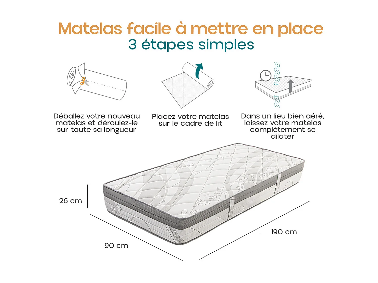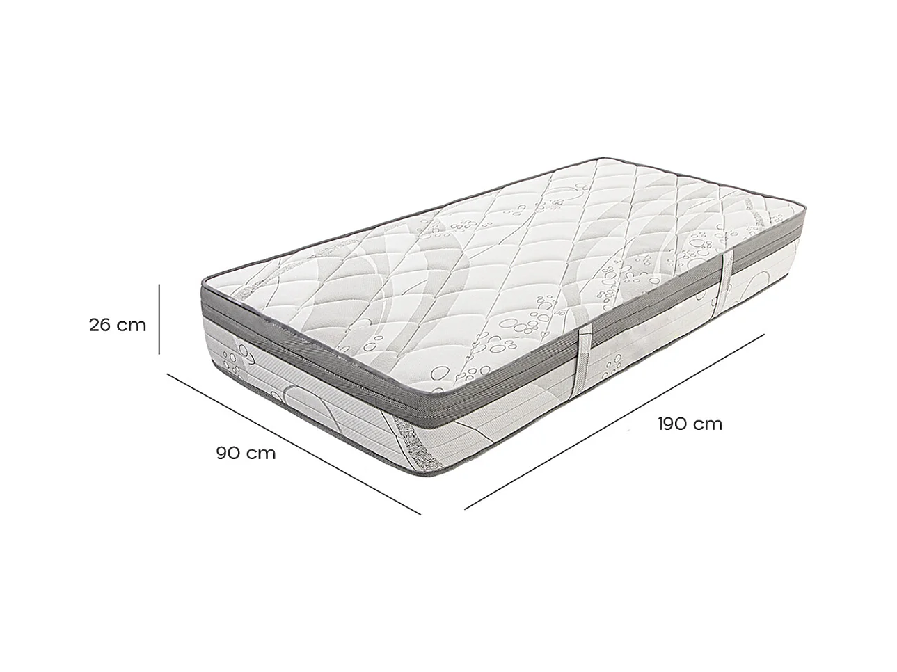 Matelas PERLA 90x190 cm, à ressorts ensachés, en mousse haute densité, Soutien ferme, Indépendance du Couchage, face été/hiver, épaisseur 26 cm
