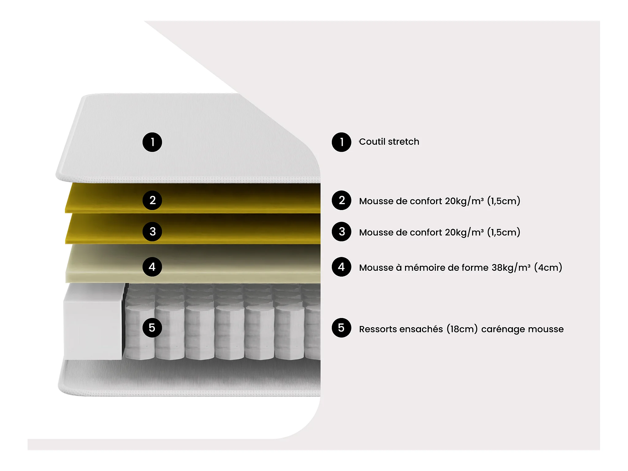 Matelas 200 x 200 cm hybride ressorts ensachés et mémoire de forme ép.25cm - ASTRIA Art Collection de YSMÉE
