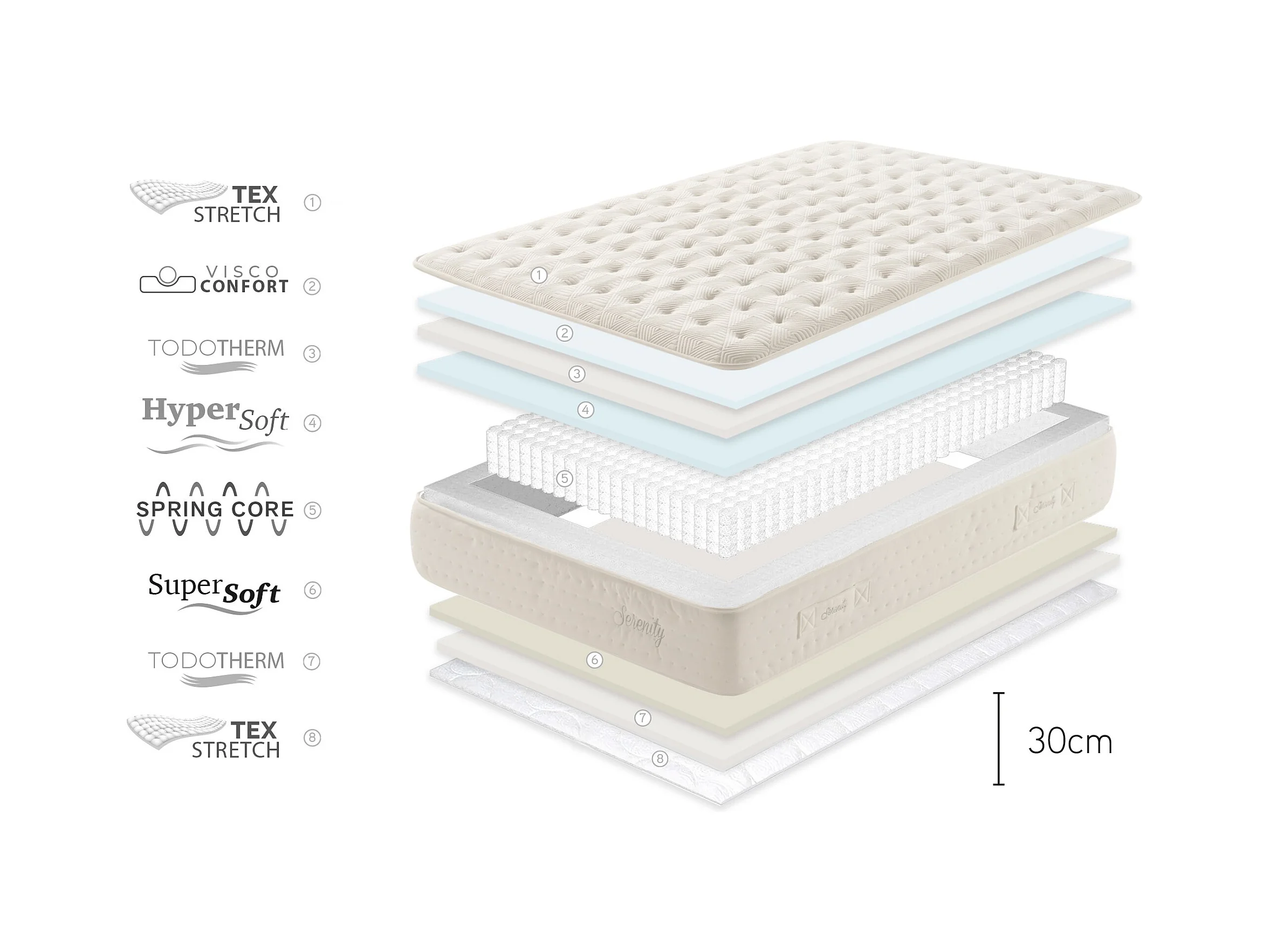 Matelas Ressorts Ensachés Serenity 30 cm, 160x200 cm - Moonia
