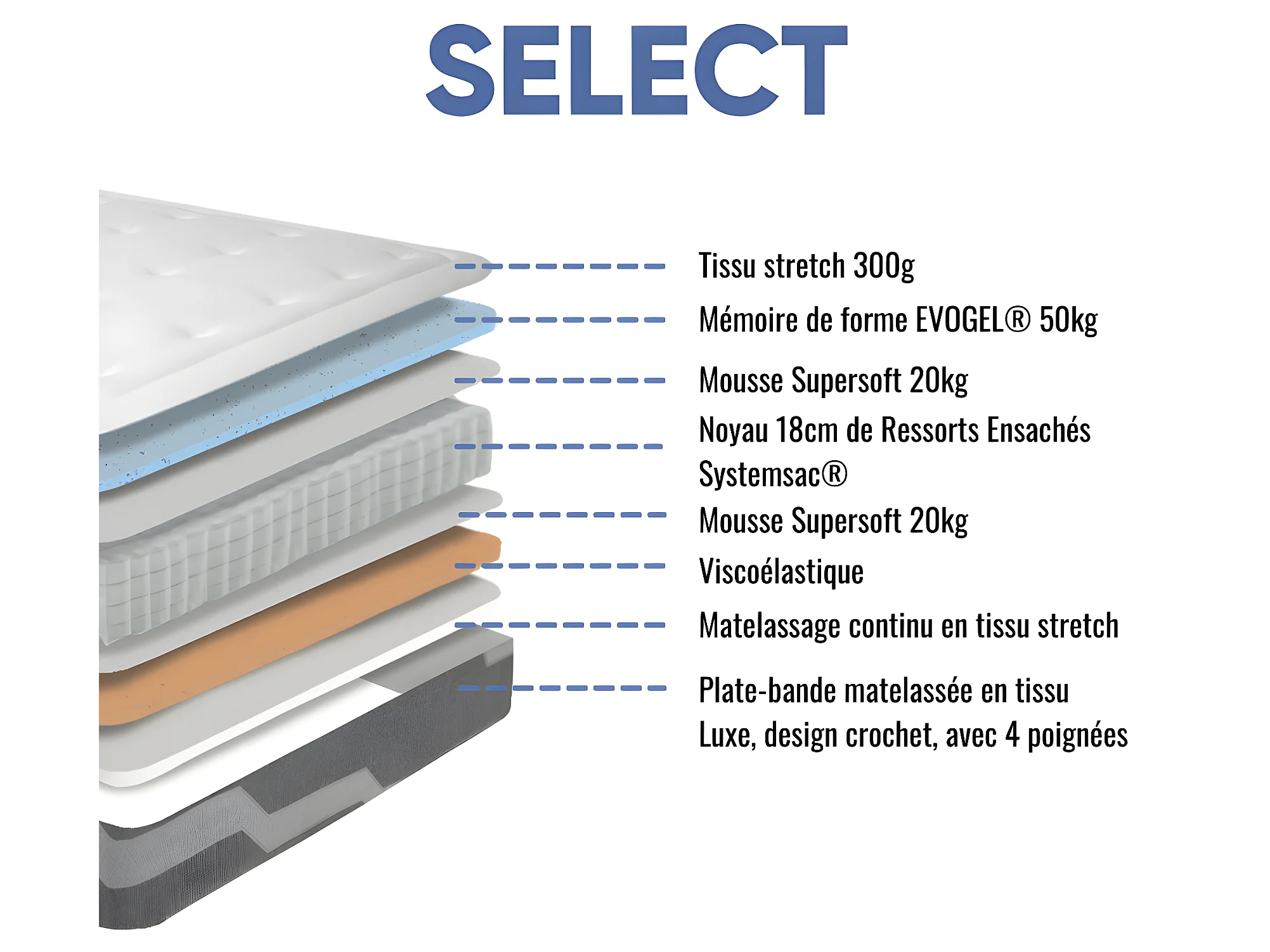 Matelas ressorts Select - 90x190cm - accueil mémoire de forme - 26 cm