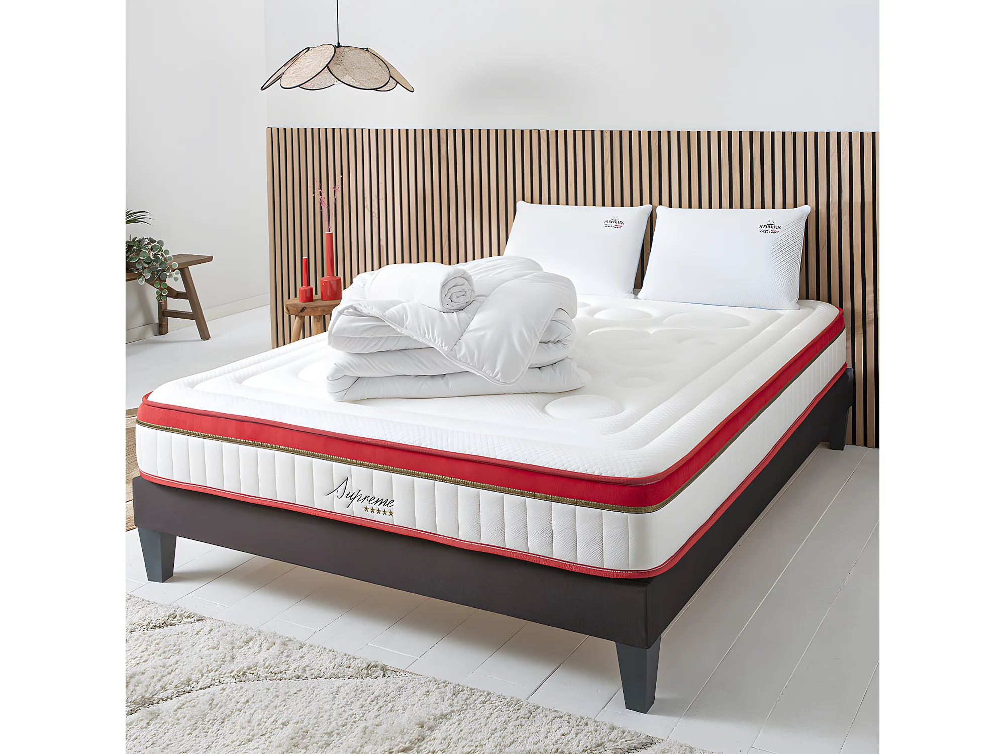 Matelas Suprême Mousse Accueil Mémoire de forme+ sommier gris + accessoires - 140 x 190 cm