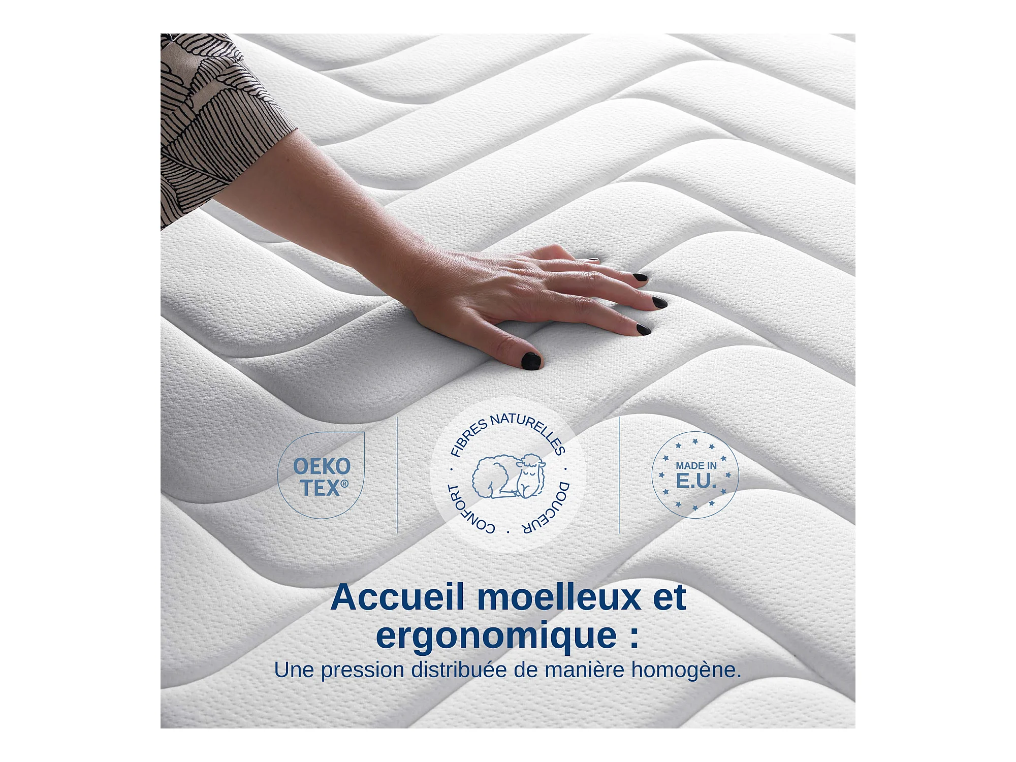 Matelas Wooly Level 140x200 cm - Hybride - 30 CM - Ressorts ensachés - Thermorégulant - Mousse en mémoire de Gel rafraîchissant - HR - Laine - Latex
