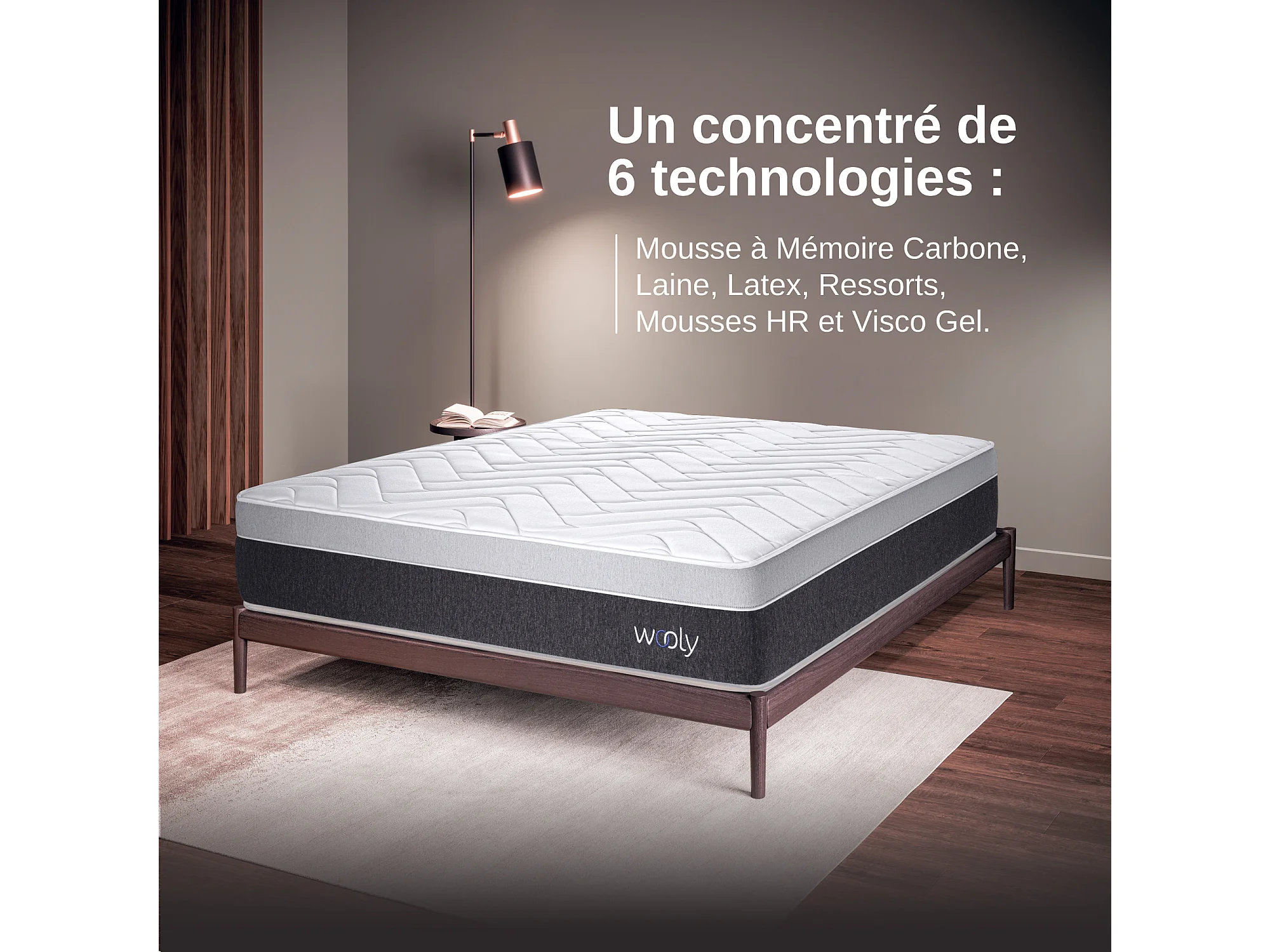 Matelas Wooly Level 150x190 cm - Hybride - 30 CM - Ressorts ensachés - Thermorégulant - Mousse en mémoire de Gel rafraîchissant - HR - Laine - Latex