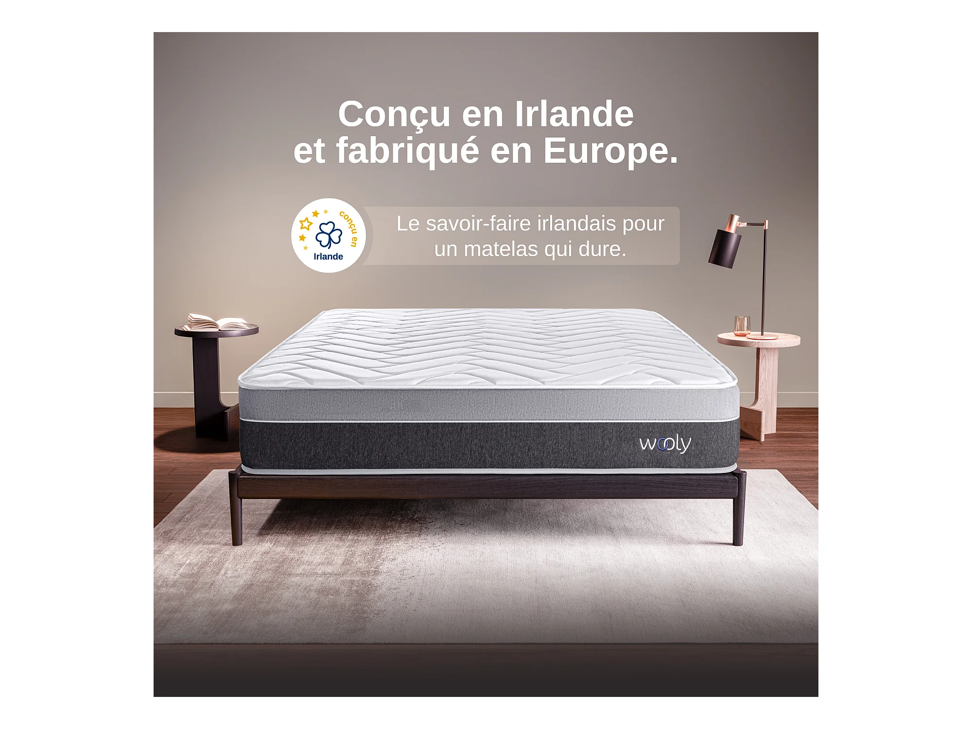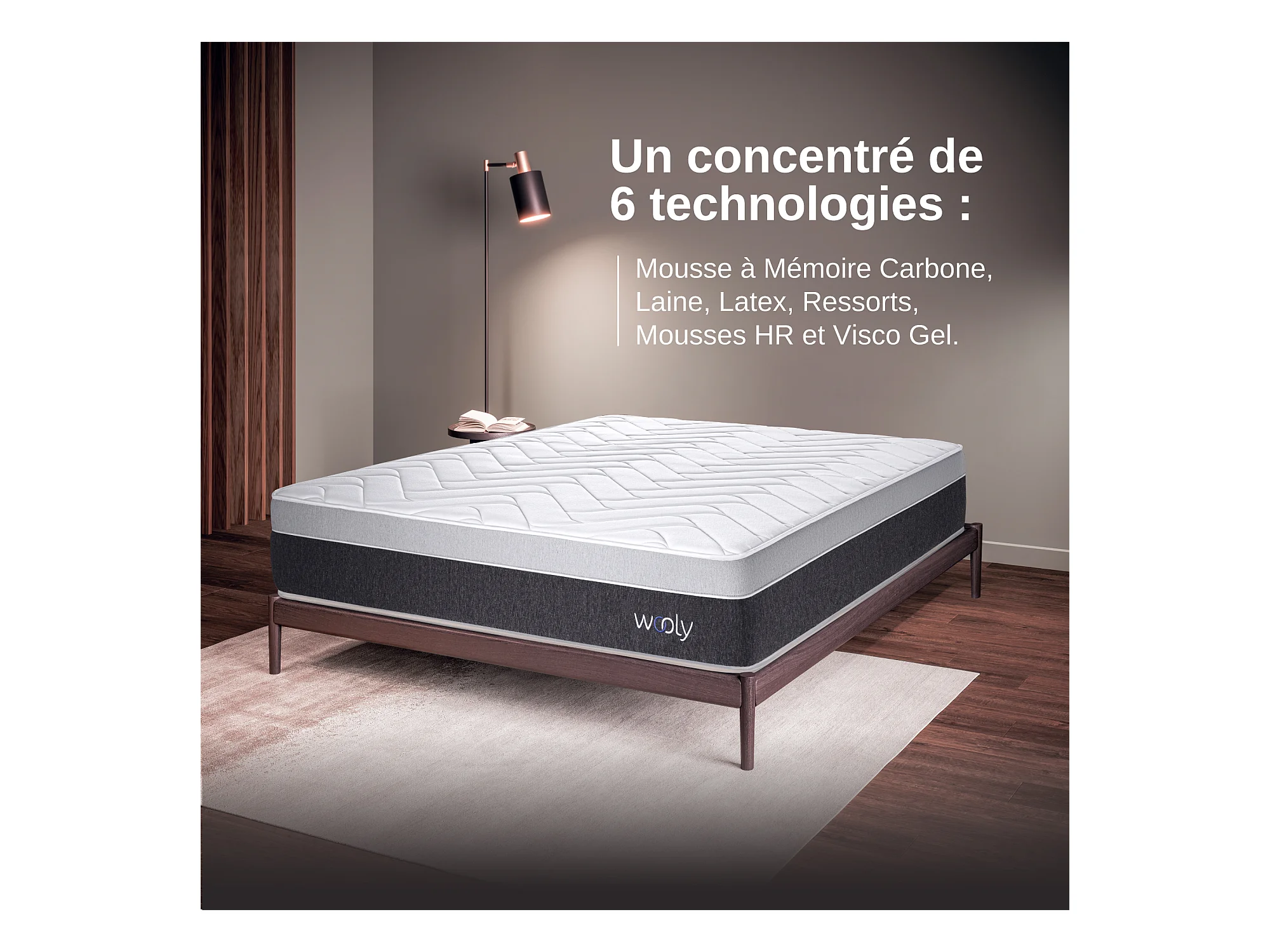 Matelas Wooly Level 160x200 cm - Hybride - 30 CM - Ressorts ensachés - Thermorégulant - Mousse en mémoire de Gel rafraîchissant - HR - Laine - Latex