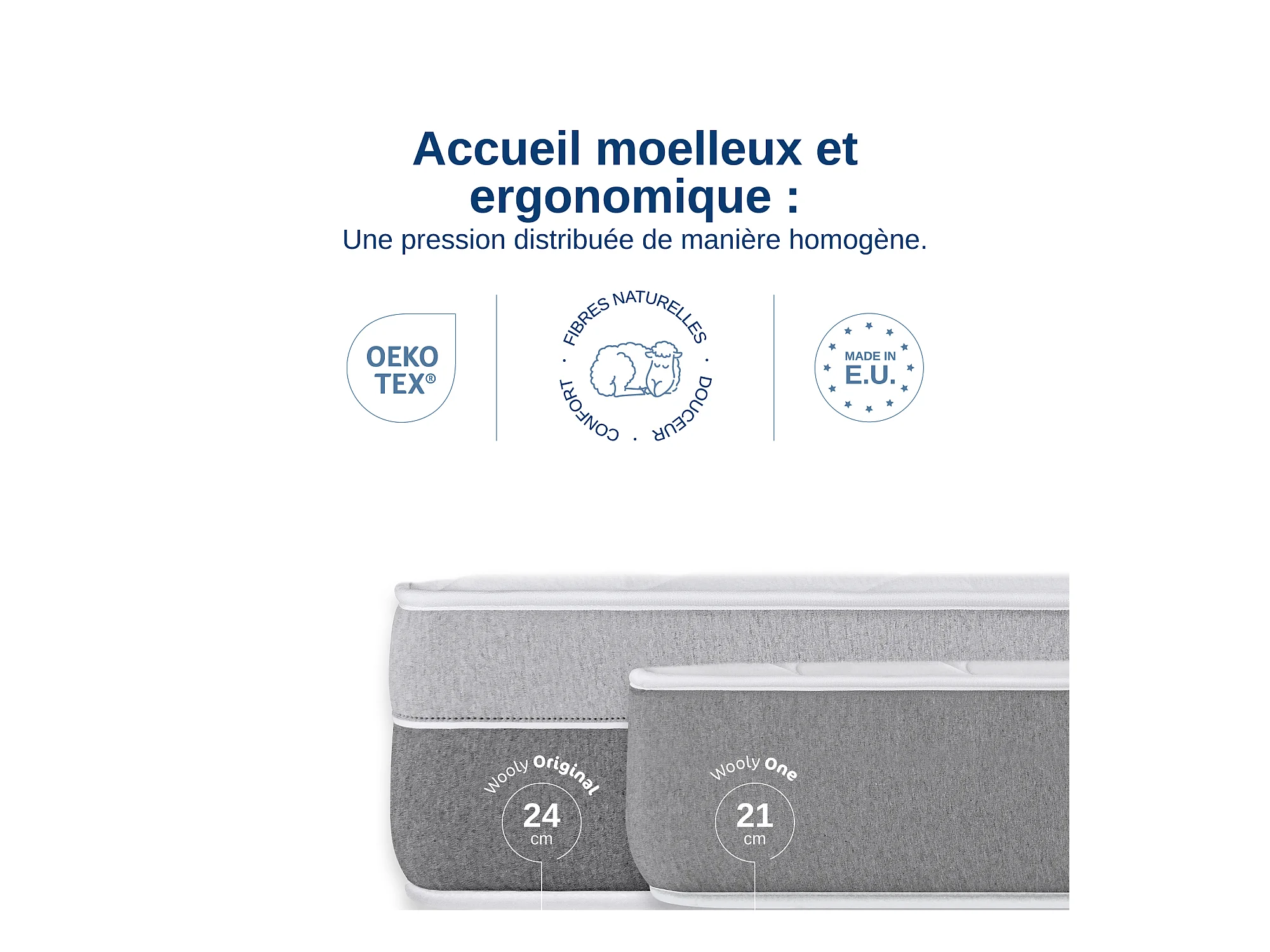 Matelas Wooly Original L 140x190 cm - 24 cm - 12 Couches Confort - Mousse mémoire Carbone - Laine - Latex-HR - 7 Zones - Ferme - Sommeil Réparateur
