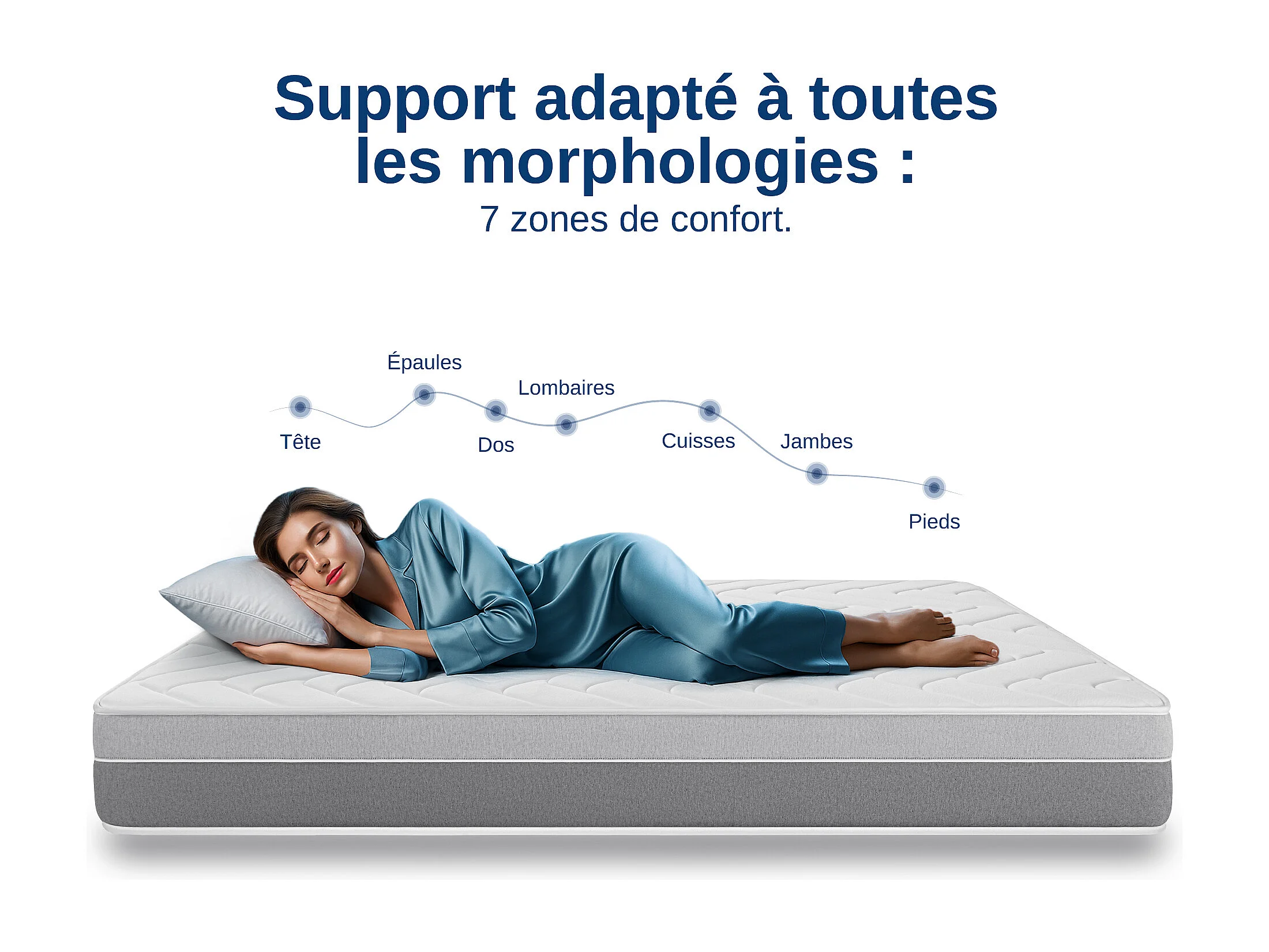 Matelas Wooly Original L 150x200 cm - 24 cm - 12 Couches Confort - Mousse mémoire Carbone - Laine - Latex-HR - 7 Zones - Ferme - Sommeil Réparateur