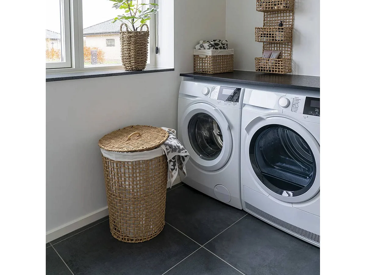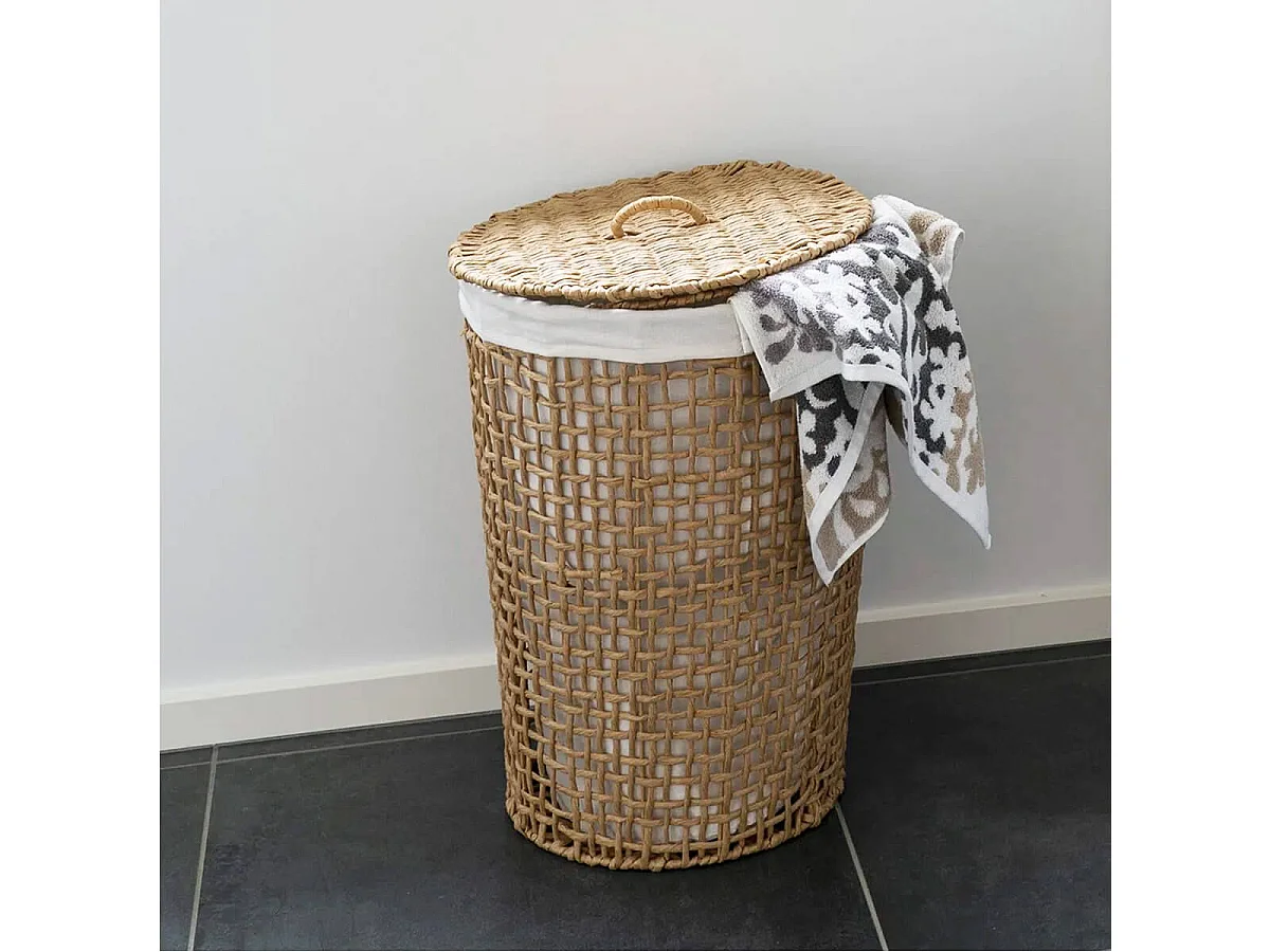 MATIAS - Panière à linge en Papier Imitation Rotin et Tissu Blanc