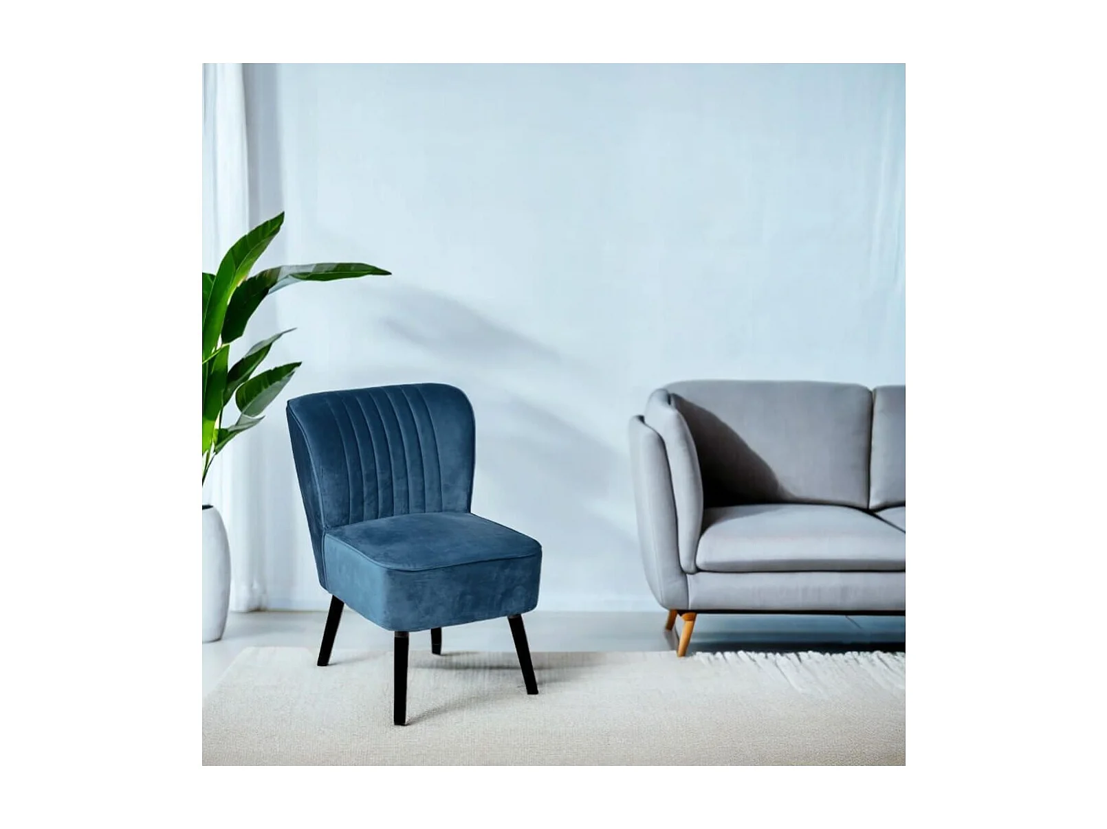MATILA - Fauteuil Bleu Canard Piètement Laqué Noir