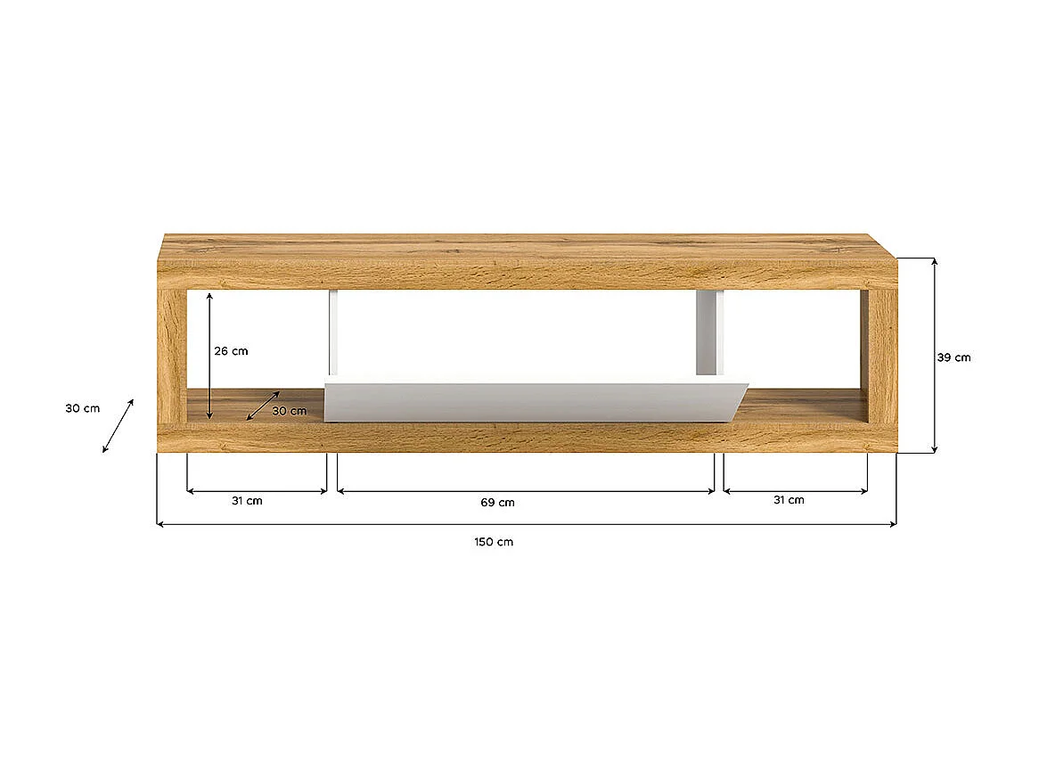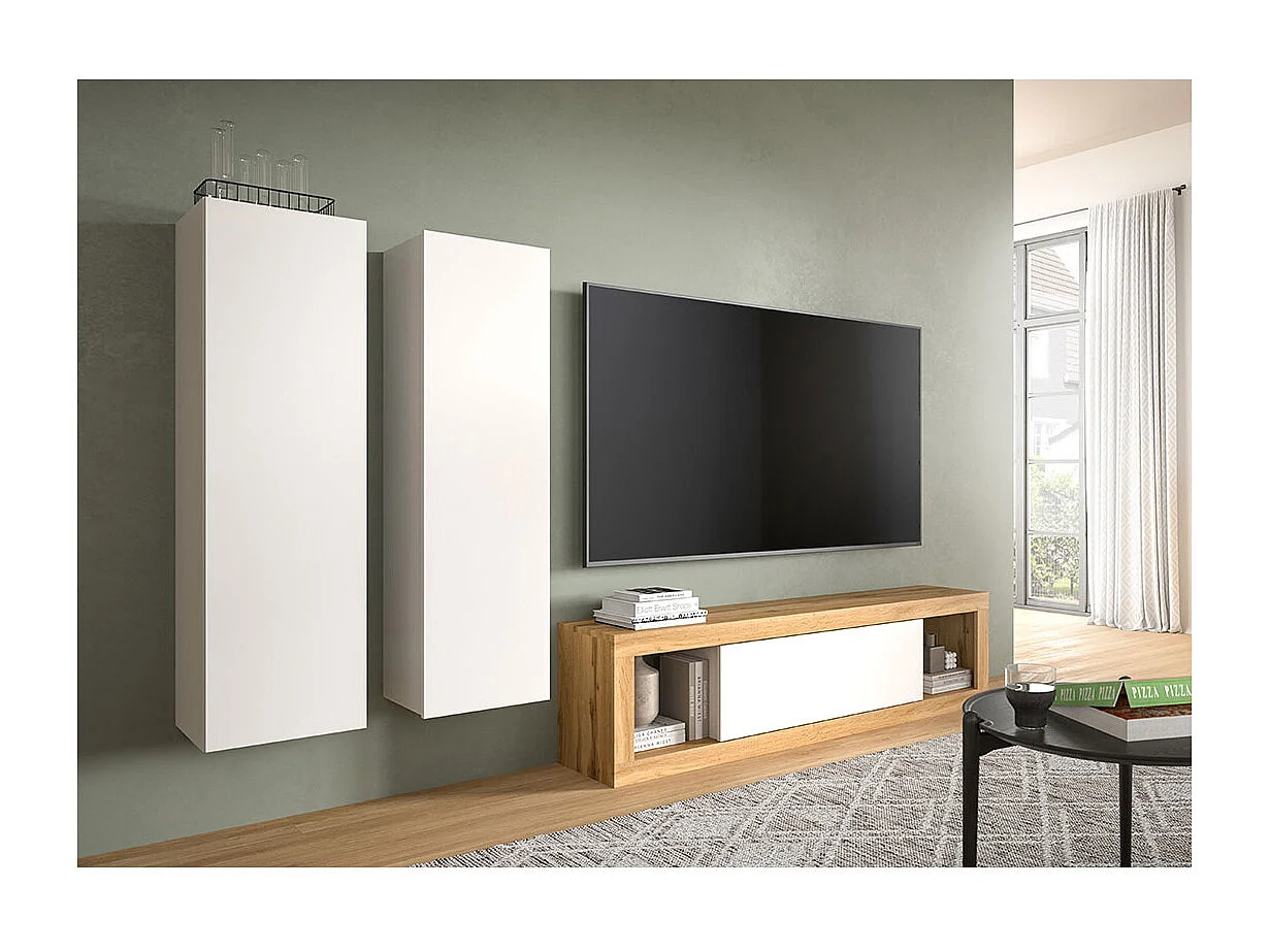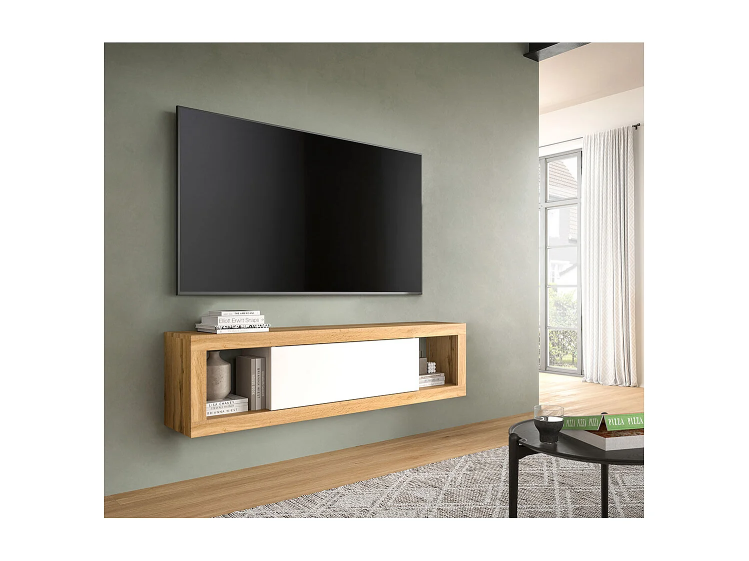 Matrix meuble TV 2 compartiments 1 porte abattante blanc.