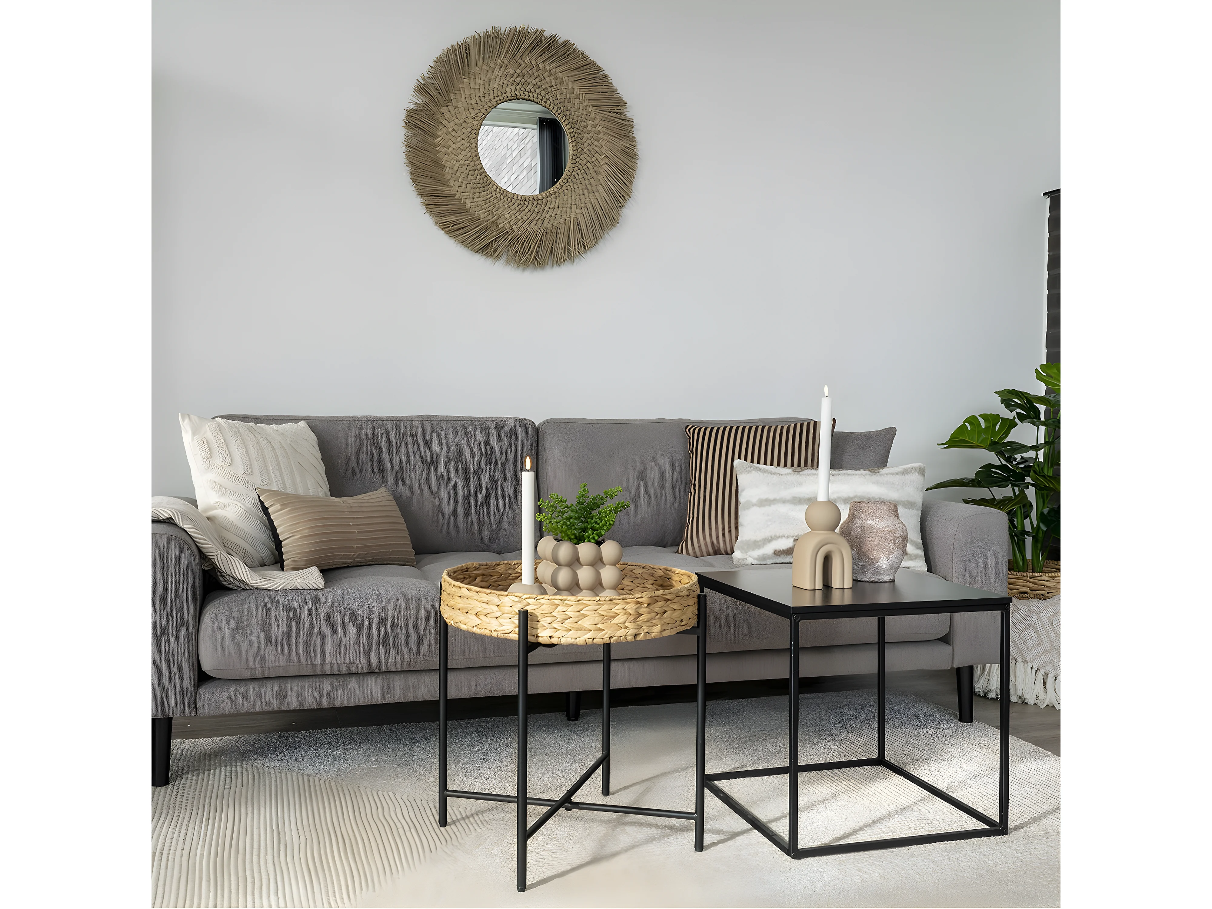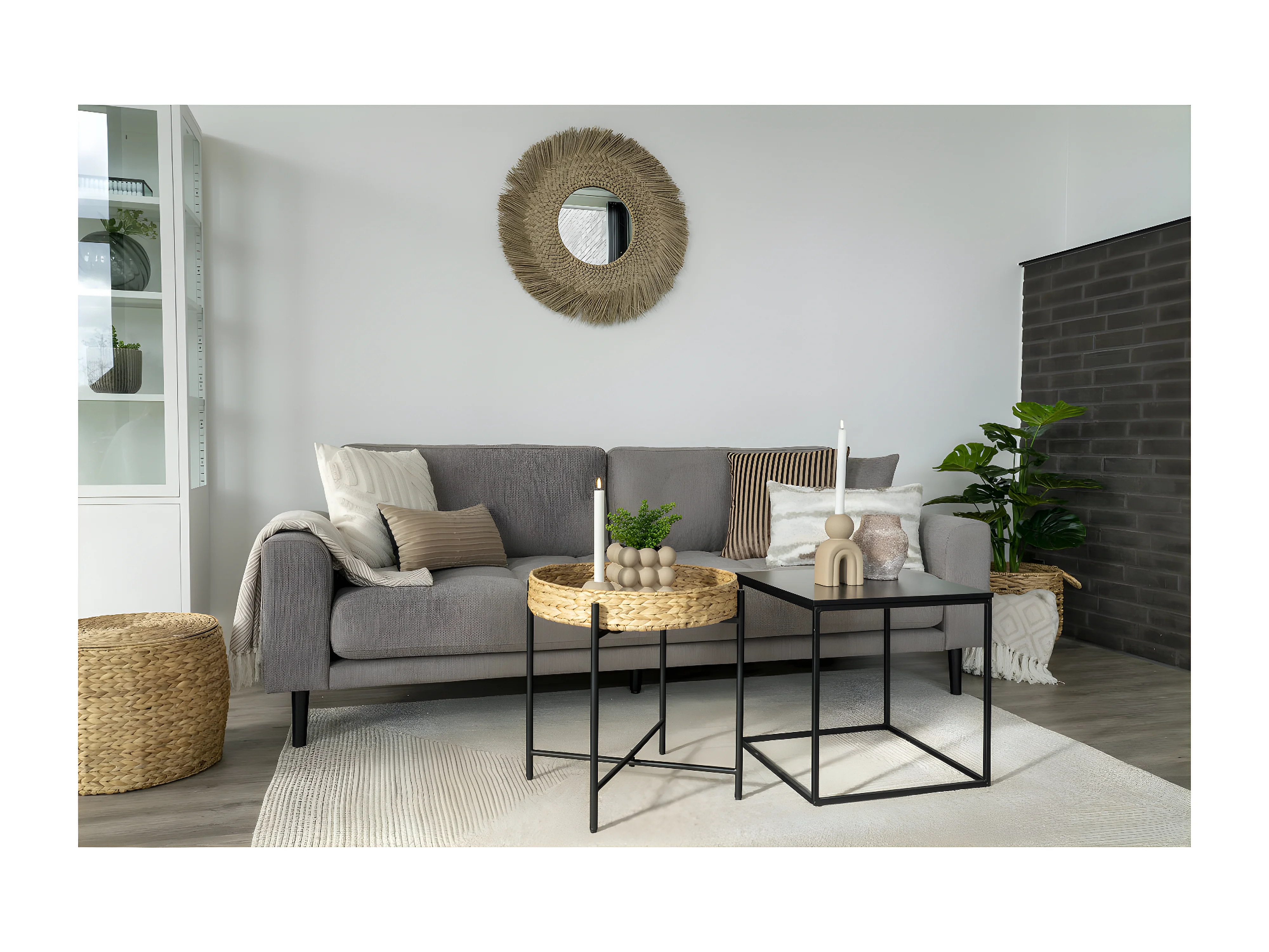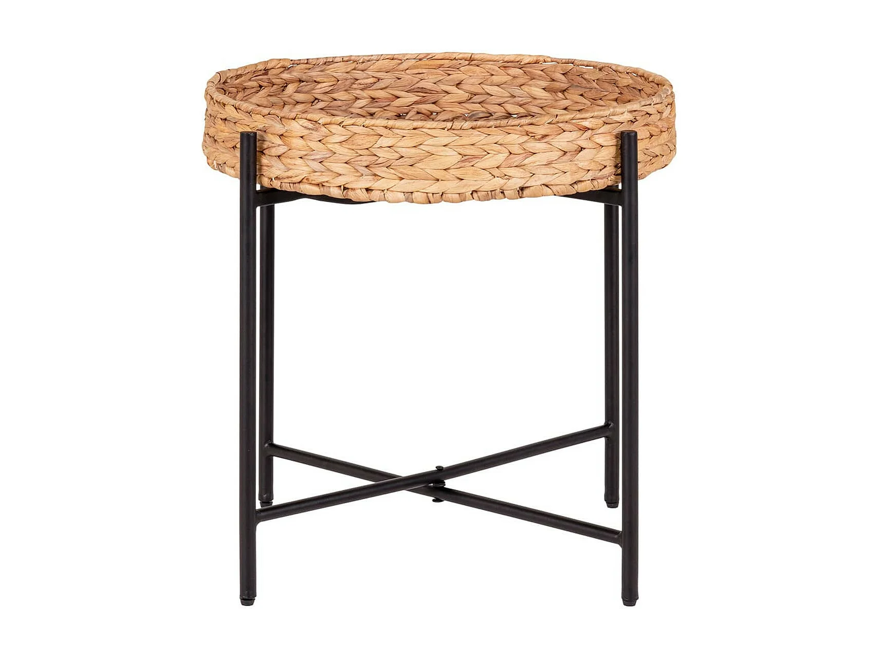 MAUREEN - Table d'appoint Plateau en Jacinthe Tressée Amovible Pieds en Métal Laqué Noir