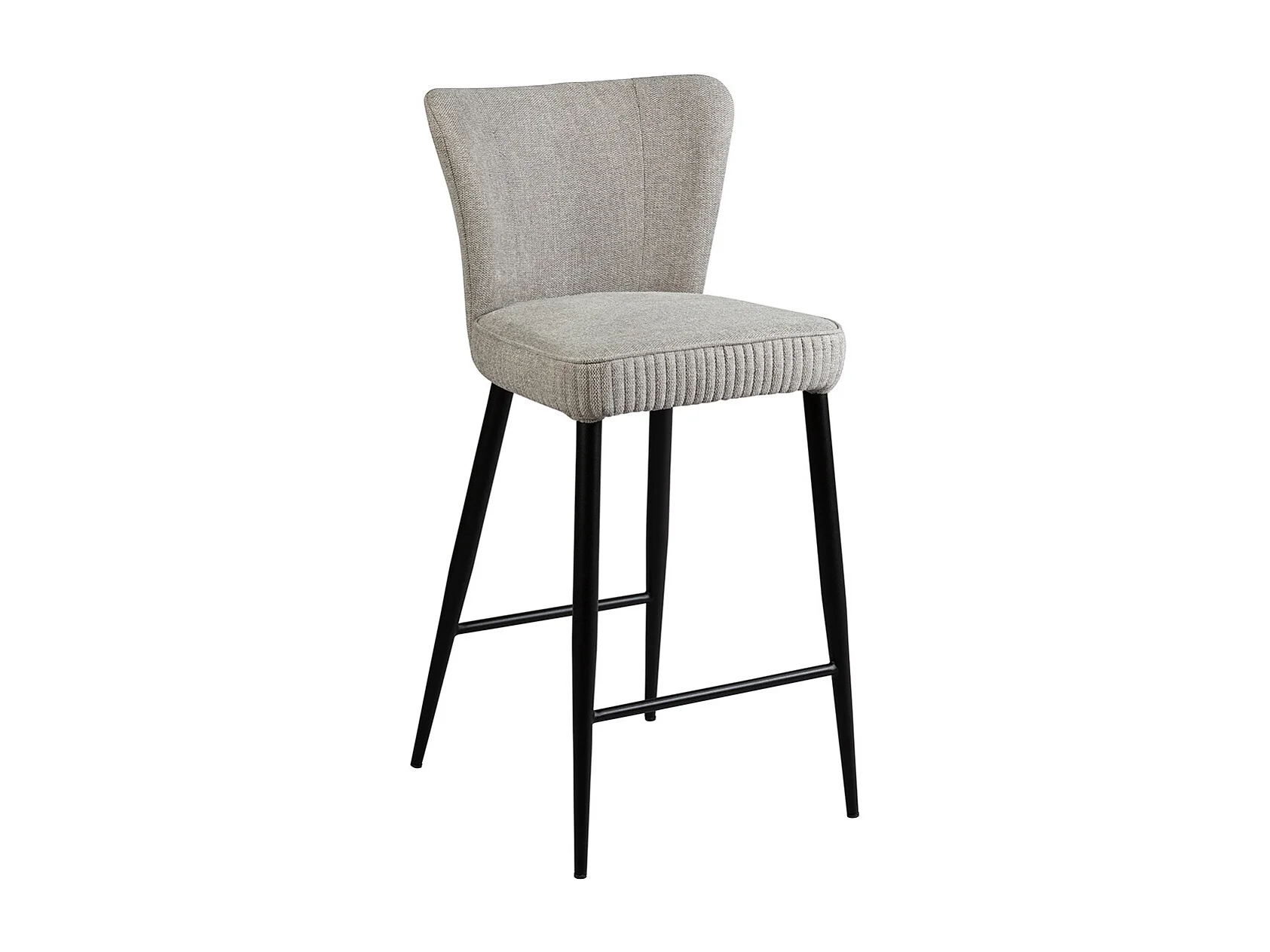 MAURINE - Tabouret de Bar Tissu Gris Clair Chiné Pieds Métal Noir Mat