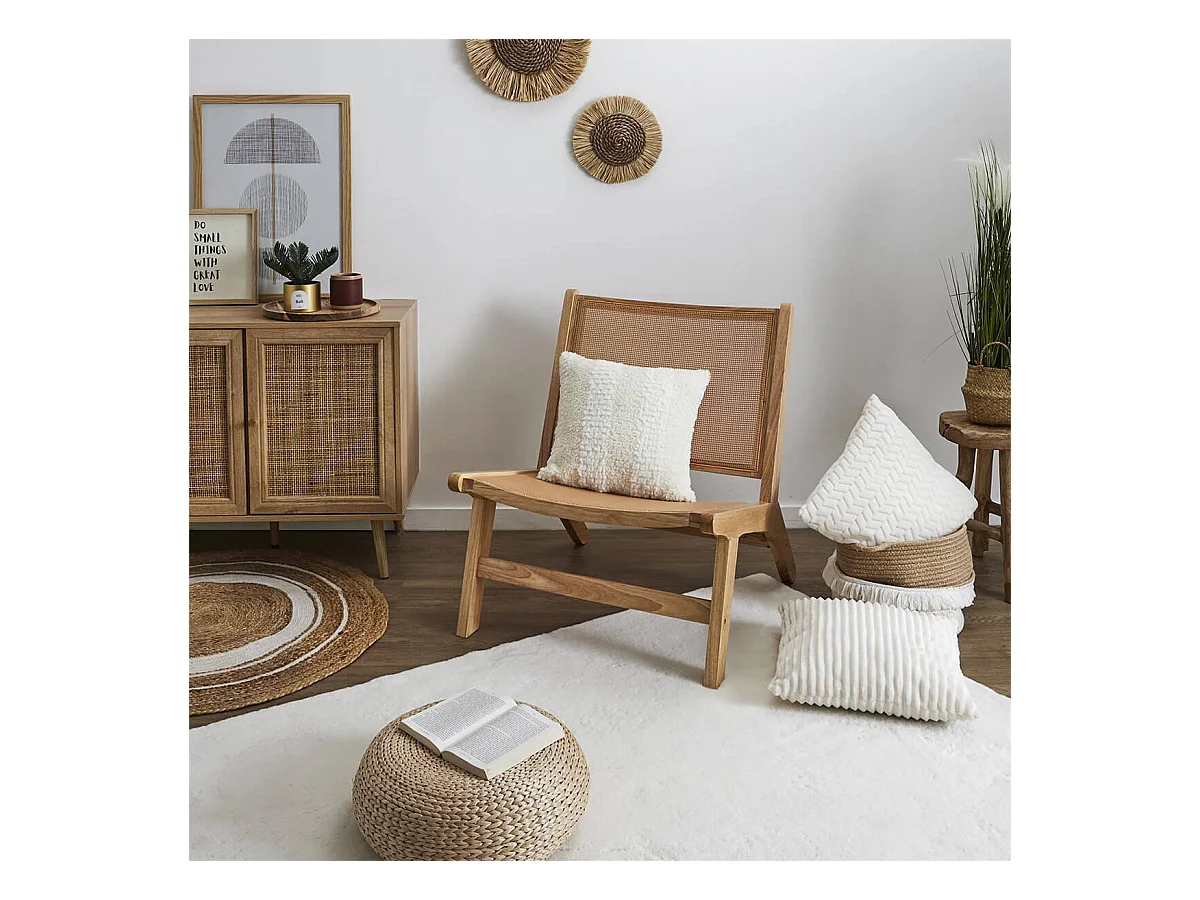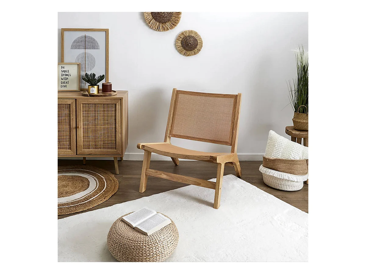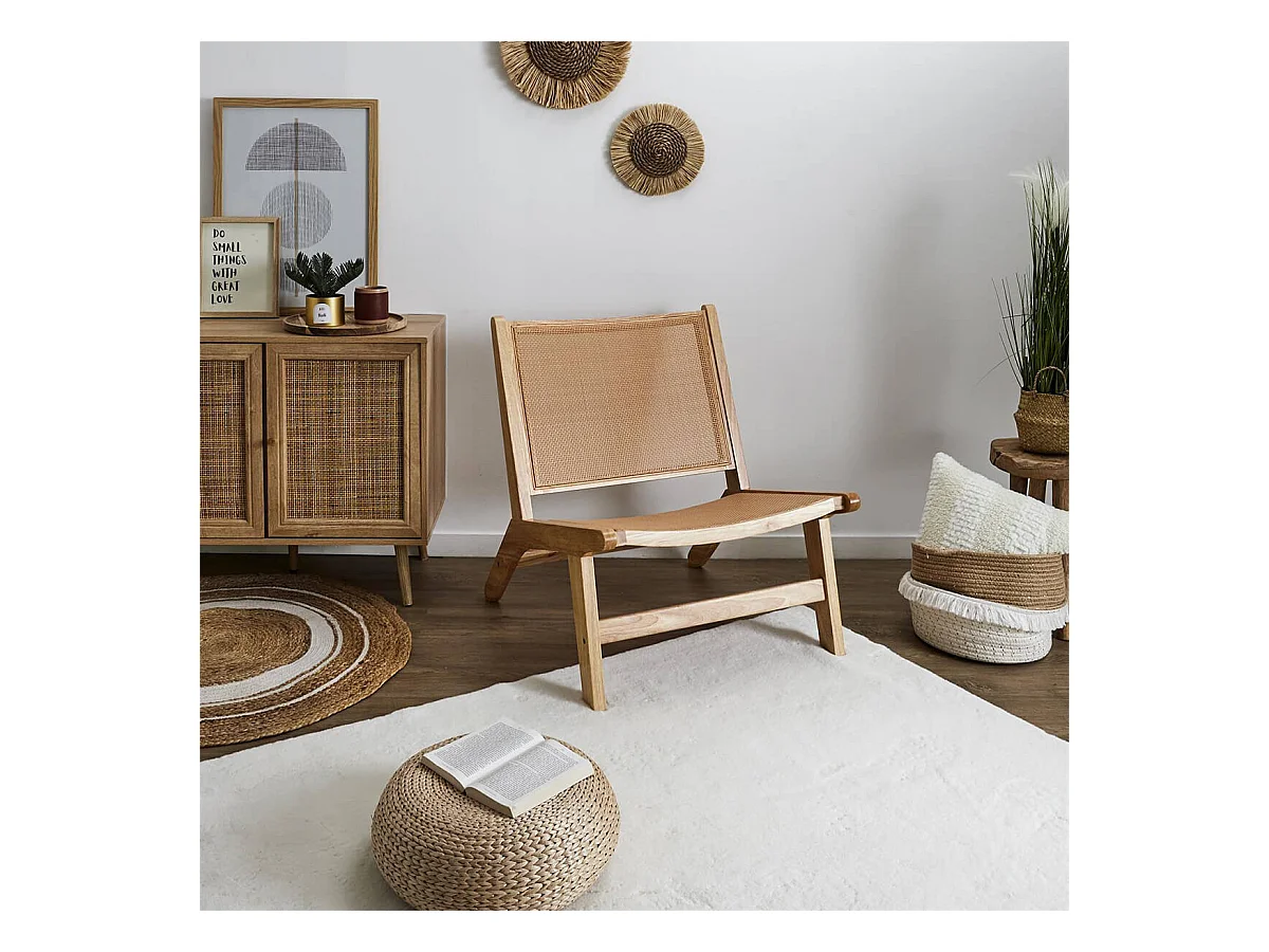 MAYA - Fauteuil Bas Effet Bois et Façades Rotin