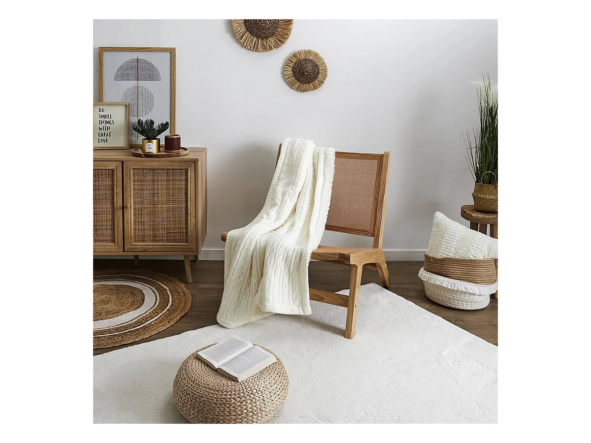 Coussin Déco Bouclette "Soana" 30x50cm Ivoire