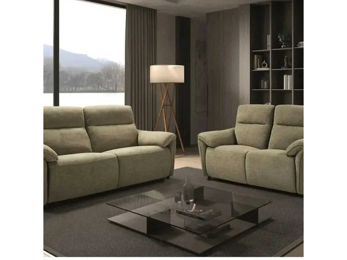 MAZARO - Canapé 2 Places Fixe Tissu Vert Chiné
