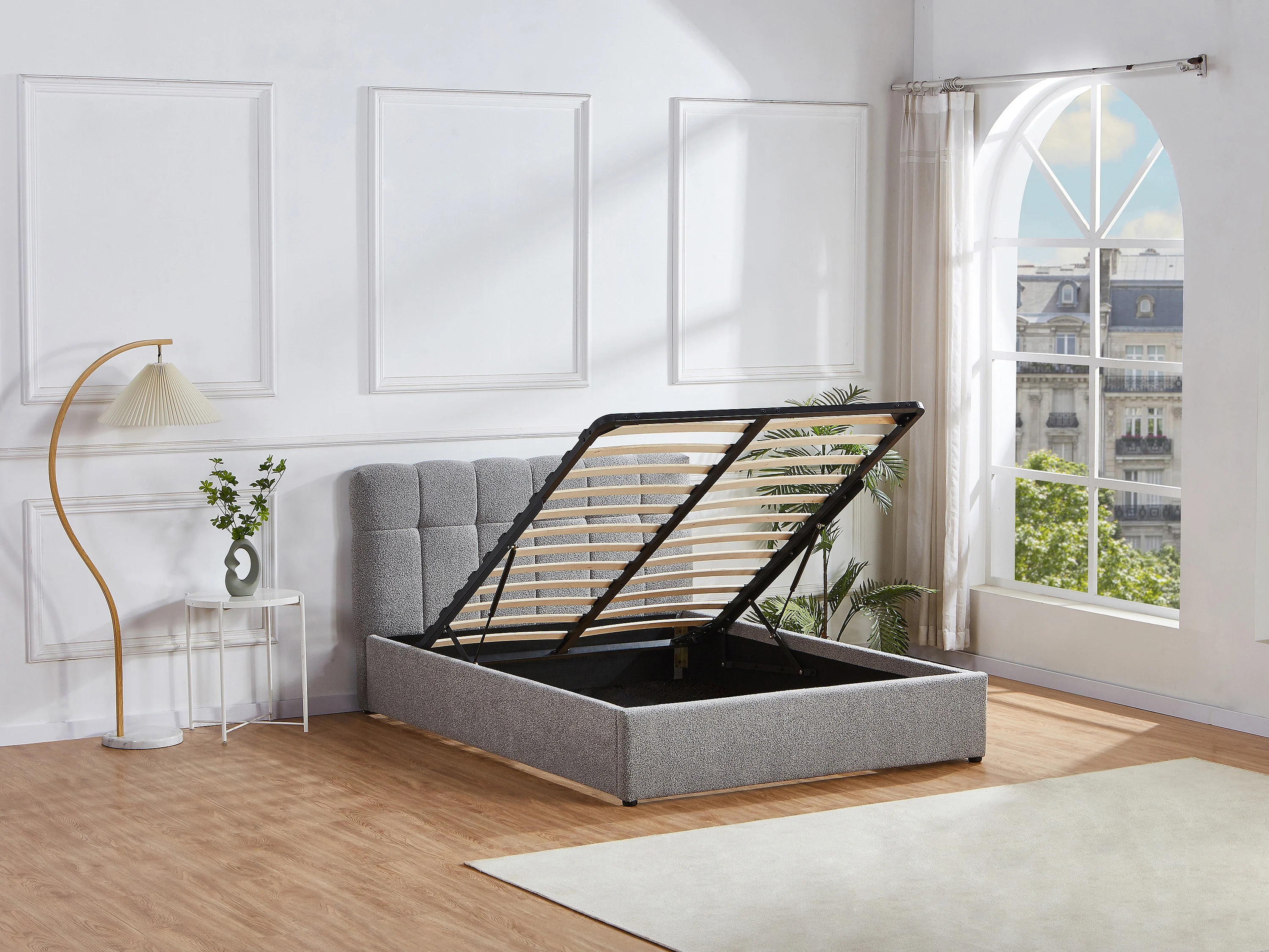 Lit coffre 160 x 200 cm - Tissu bouclette - Gris - MAZIRI
