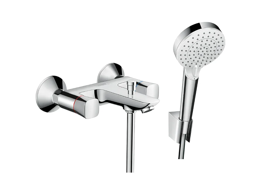 Mélangeur baignoire HANSGROHE Logis + pack pommeau de douche Crometta 2 jets + support + flexible