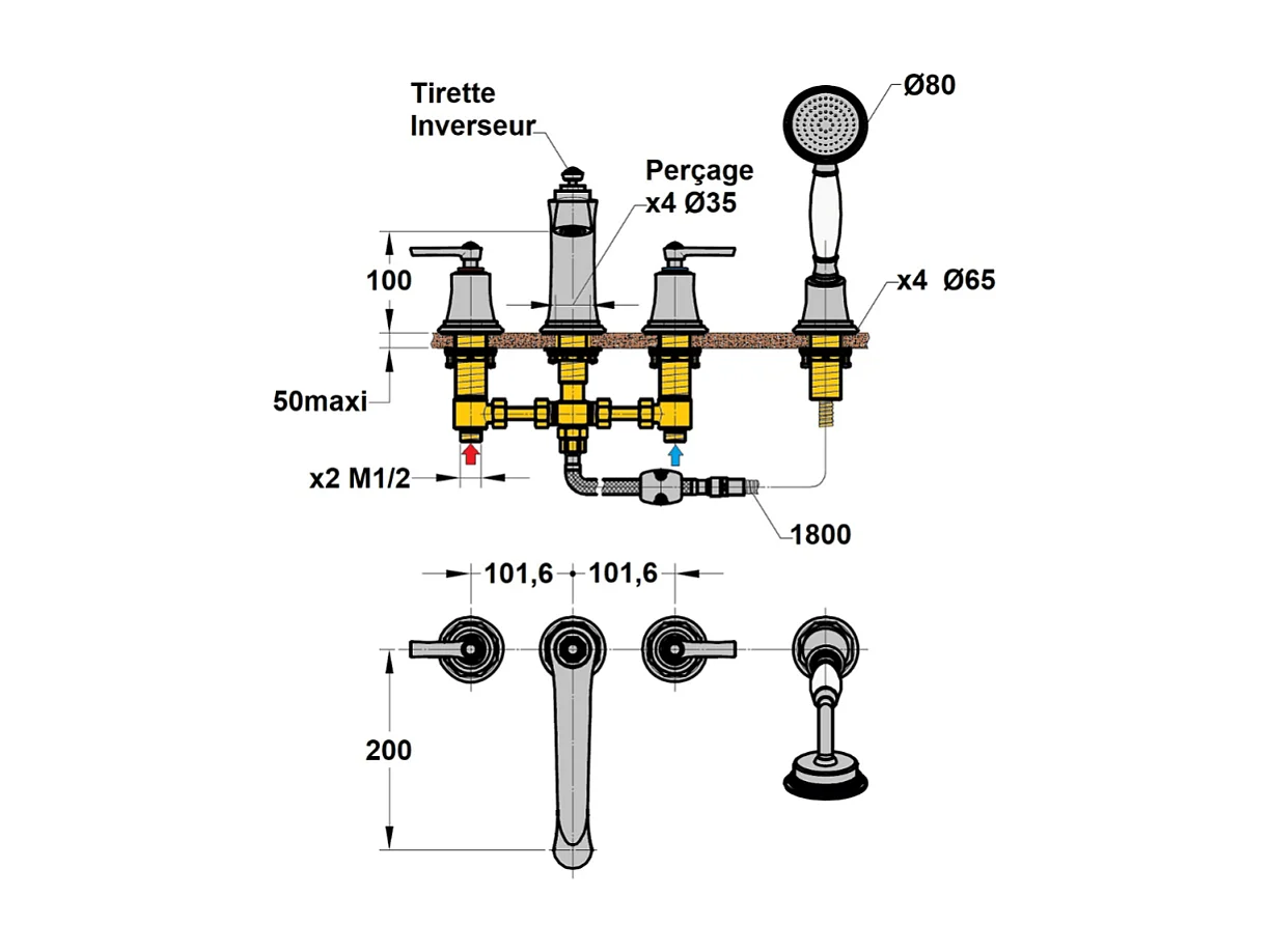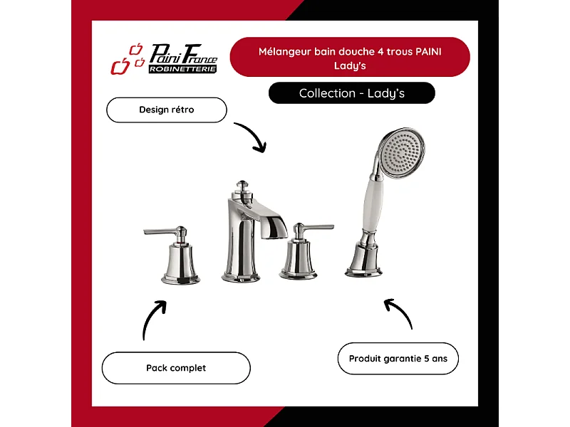 Mélangeur bain douche 4 trous PAINI Lady's Chromé
