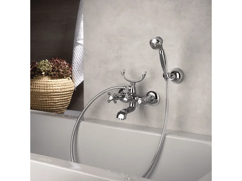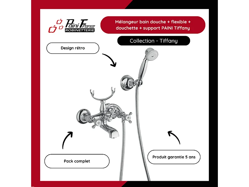 Mélangeur bain douche + flexible + douchette + support PAINI Tiffany Chromé