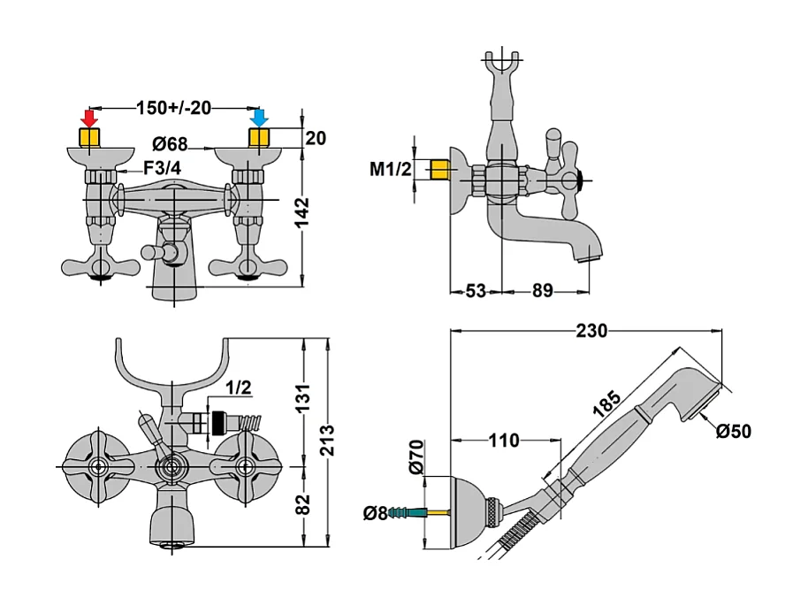 Mélangeur BAIN douche flexible + douchette + support PAINI Tiffany Gris Acier