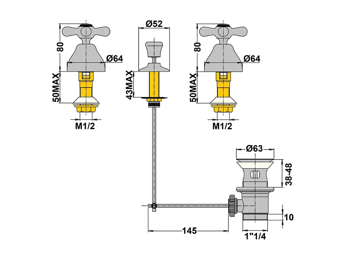 Mélangeur bidet 3 trous PAINI Tiffany Chromé