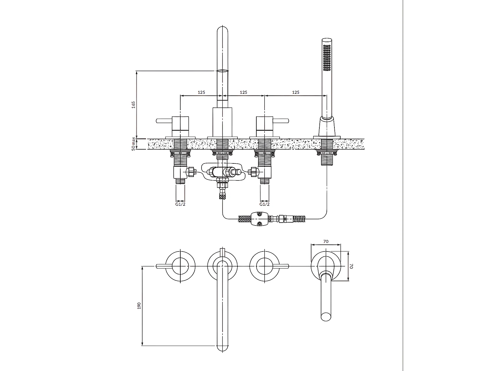 Mélangeur de bain 4 trous Y Couleur: or