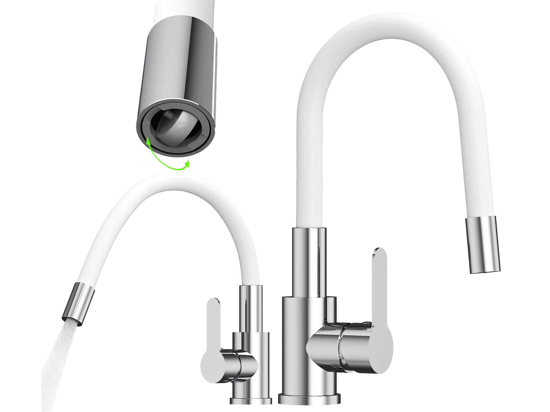 Mélangeur de cuisine à bec flexible blanc GRADO PLUS aérateur de bec pivotant