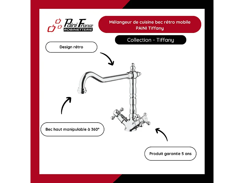 Mélangeur de cuisine bec rétro mobile PAINI Tiffany Vieux Bronze
