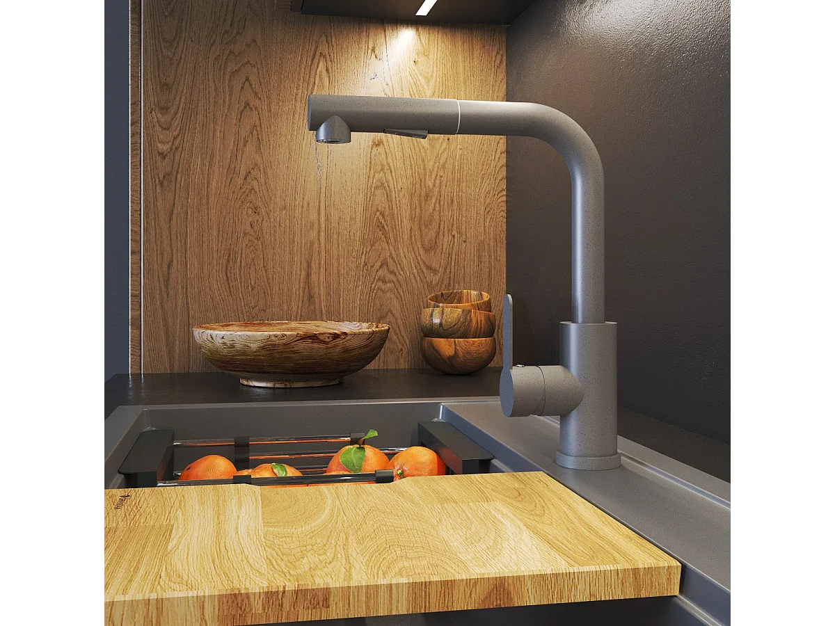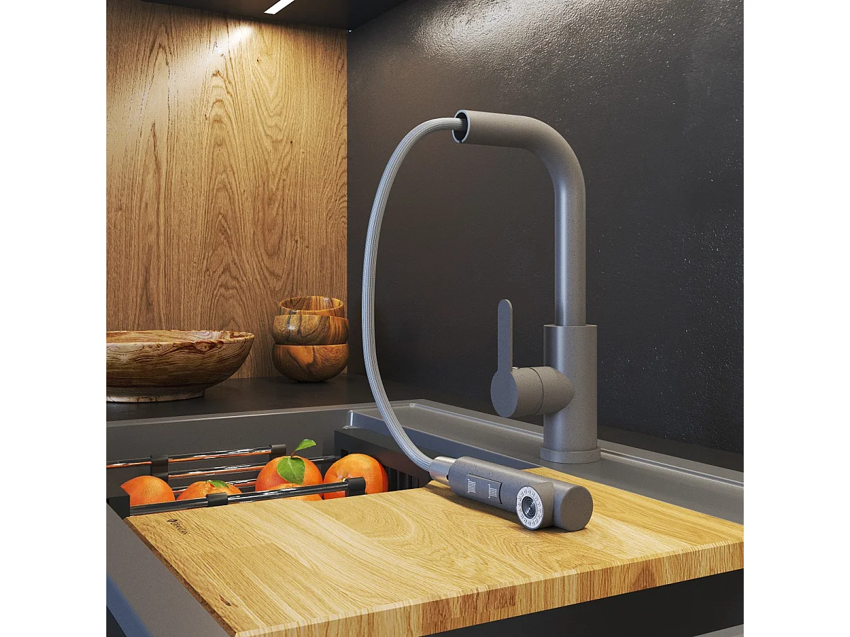Mélangeur de cuisine à bec flexible Gris GRADO PLUS aérateur de bec pivotant