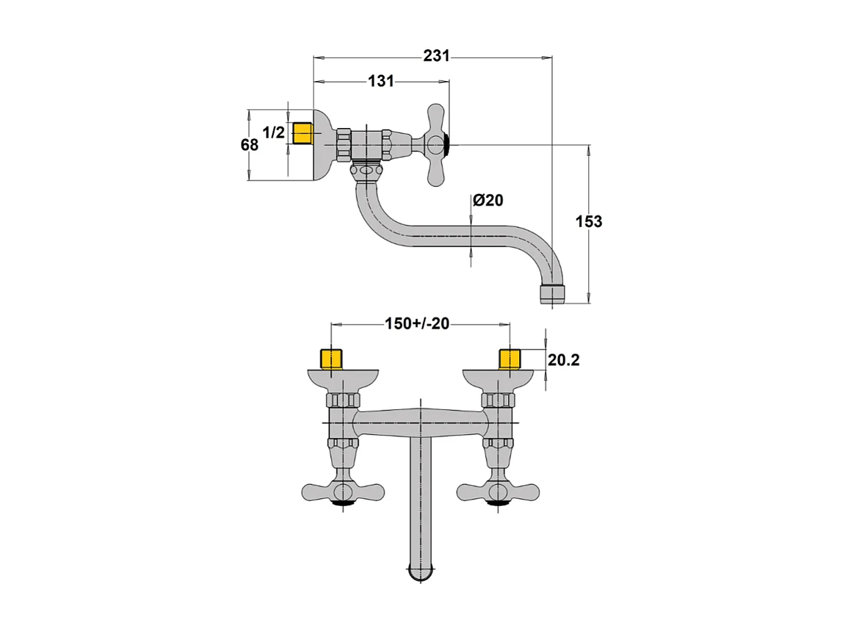 Mélangeur de cuisine mural PAINI Tiffany Gris Acier