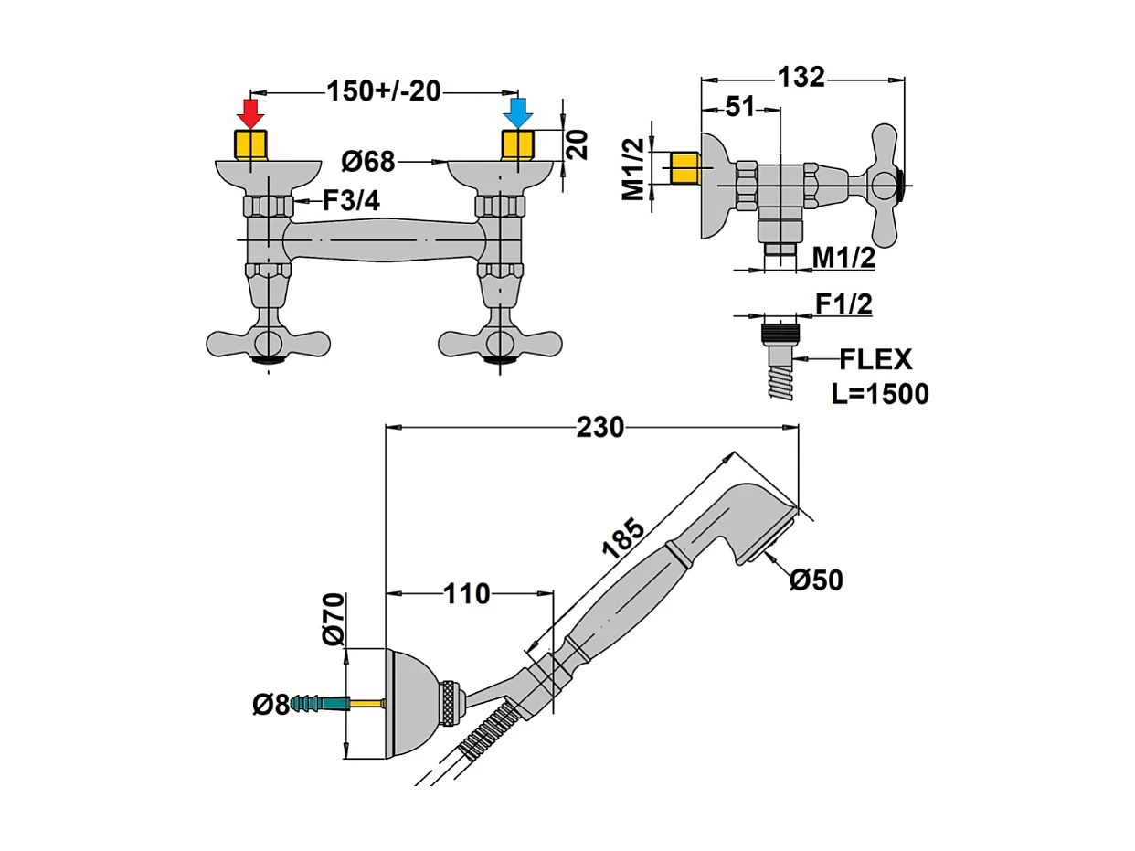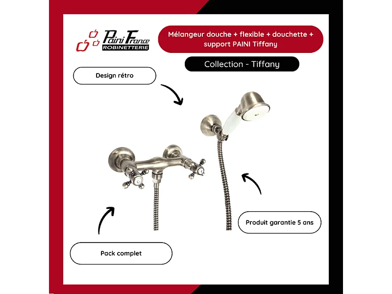 Mélangeur douche + flexible + douchette + support PAINI Tiffany Gris Acier