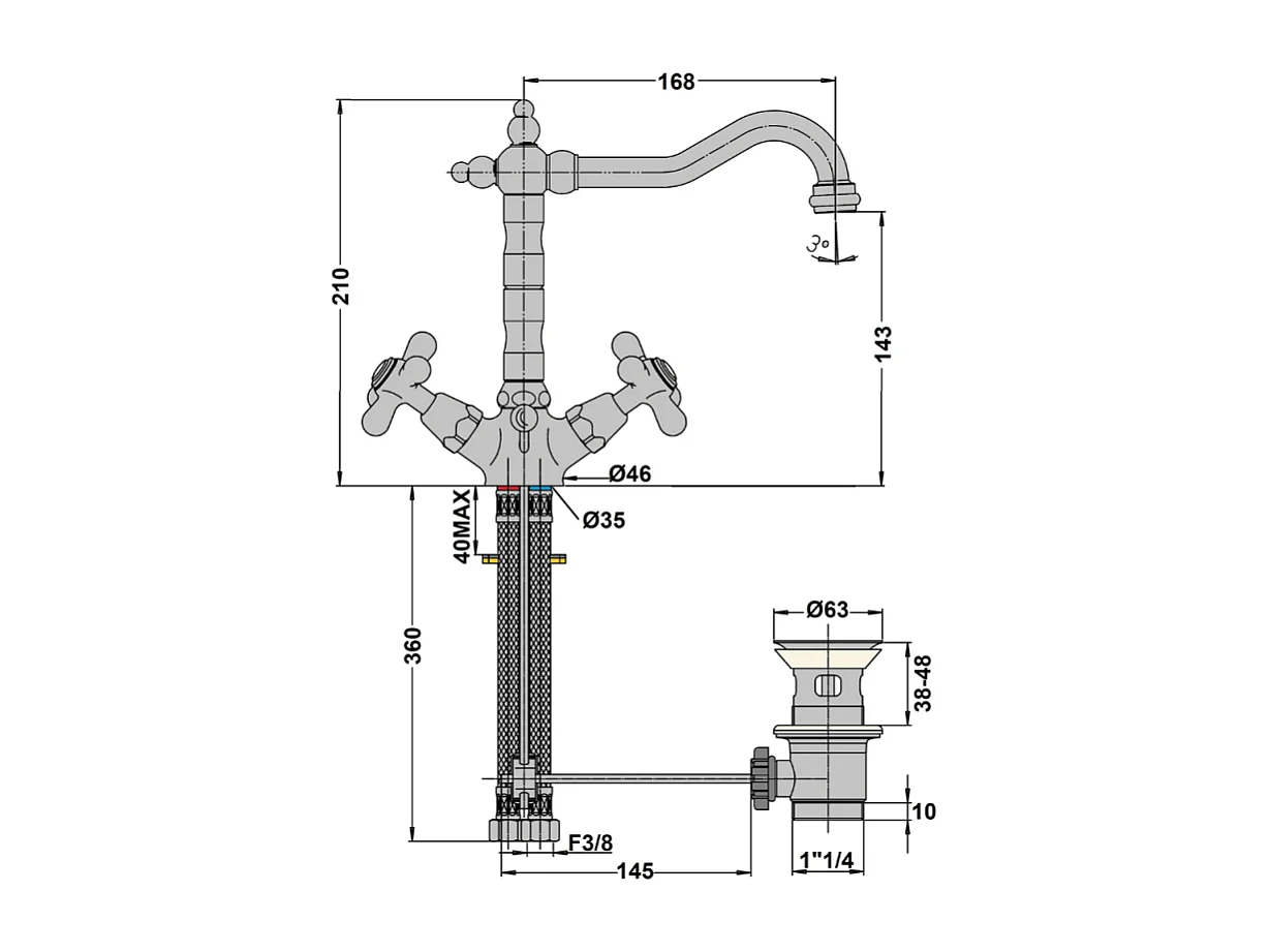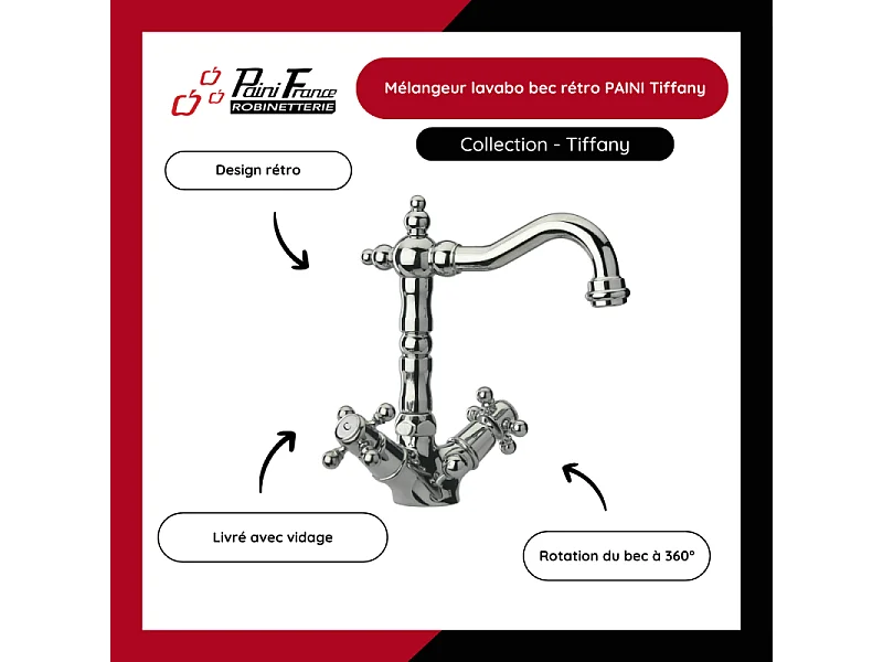 Mélangeur lavabo bec rétro PAINI Tiffany Gris Acier